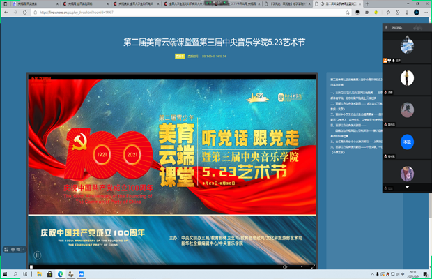 竞答比赛结束后,支部党员同志集中观看了美育云端课堂,通过“音乐党史”系列活动,与会党员进一步了解了党的各个历史时期具有代表性的音乐作品。云课堂用优秀文化艺术宣传党的历史,讲好党的故事、革命故事、英雄故事,进一步推动党史学习教育开花结果、入脑入心。
