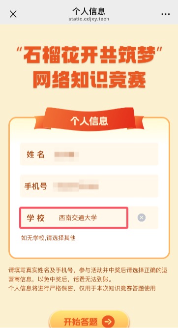 1.本次活动由活动主办方设置个人参与奖4000名,根据答题情况抽取。答题分数70分以上者获得一次抽奖机会,根据抽奖结果获得直充话费10、50、100、300元。
