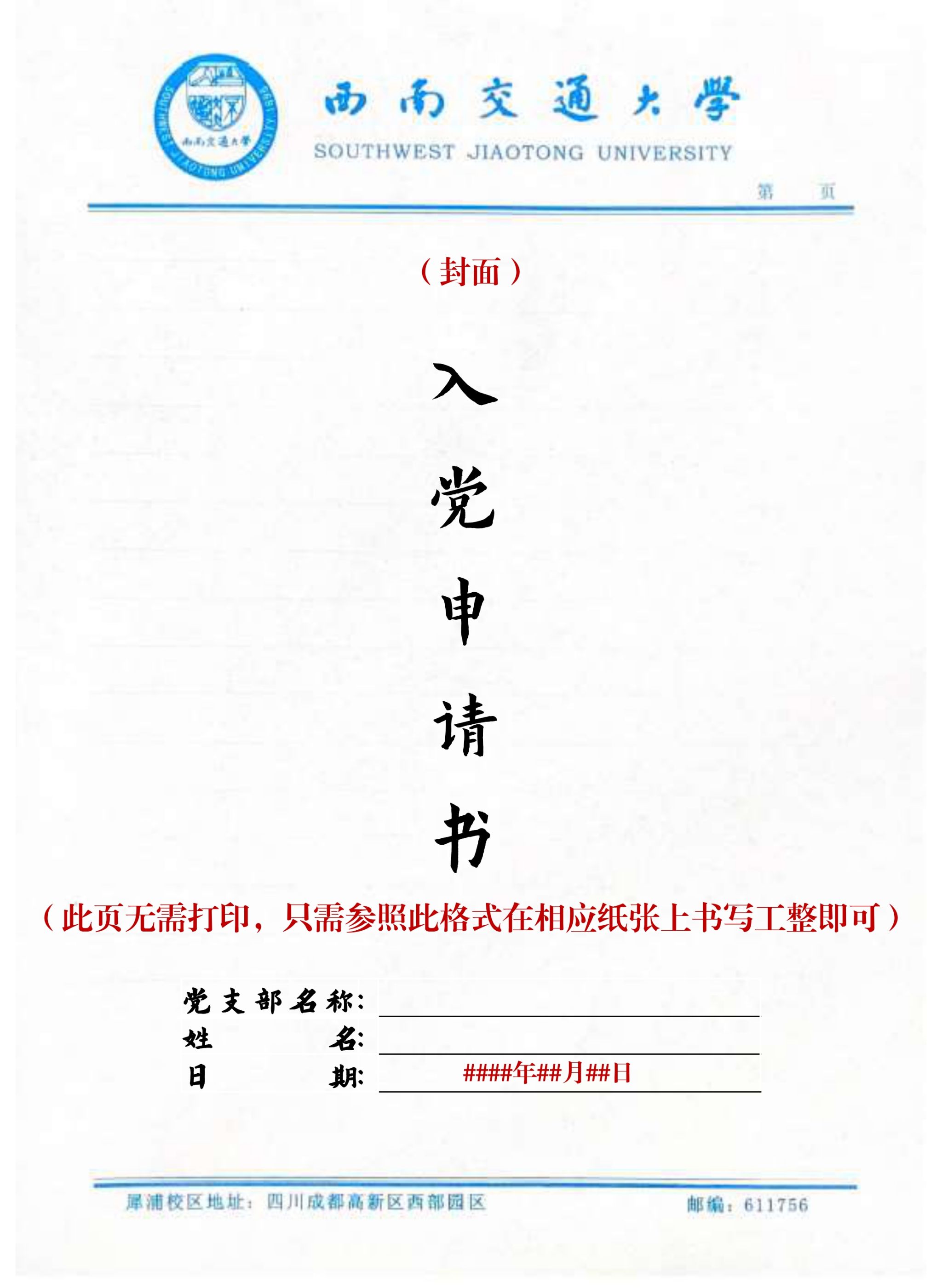 5.入党申请书要求全部手写,字迹工整,不得有涂改痕迹。在BEATSBEATS发展入党的同学,要求所有入党材料(含入党申请书、思想汇报、转正申请书等)均用交大信笺纸书写并装订。