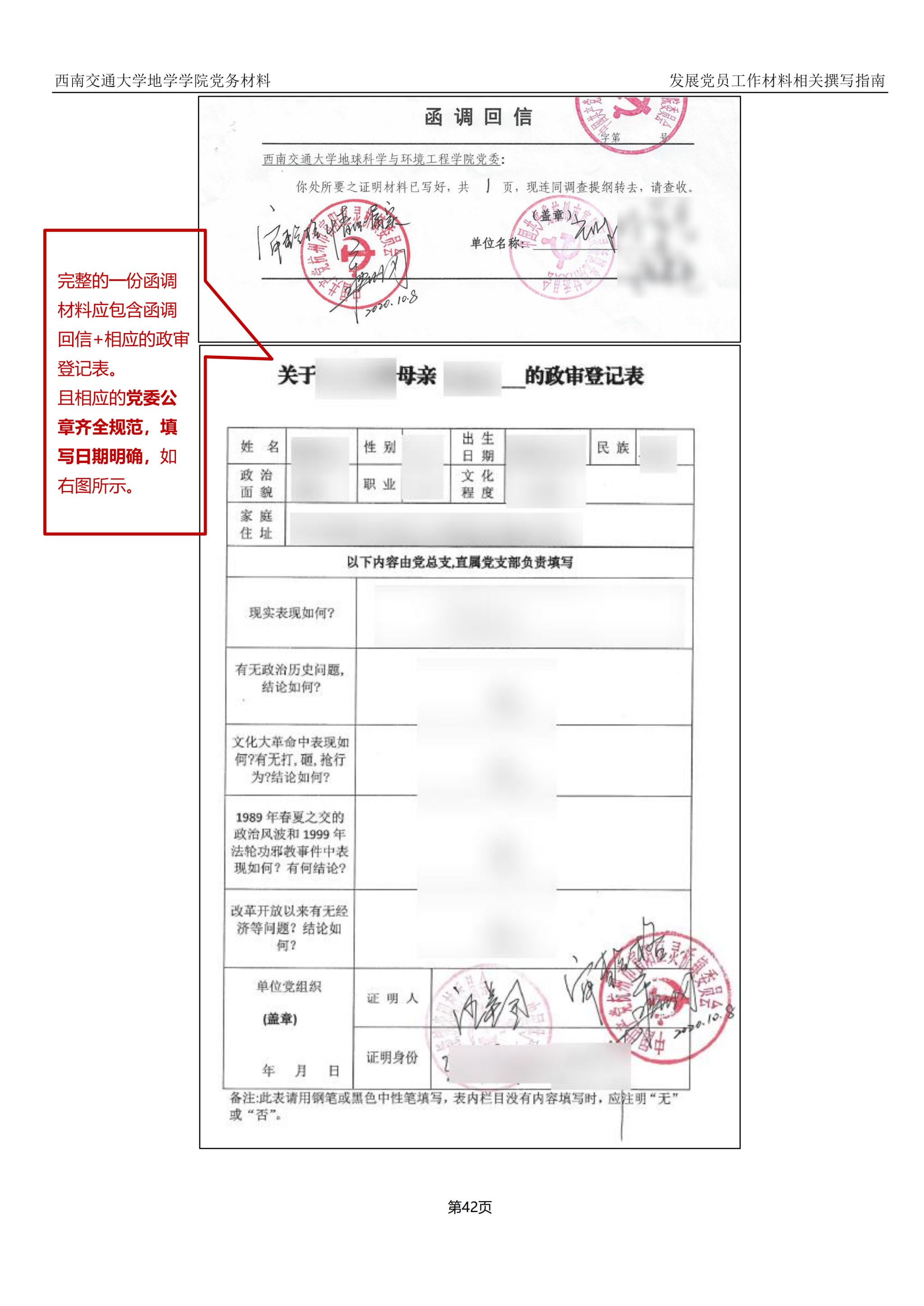 4.完整的函调寄回时需包括,函调回信(函调证明材料信第三联)以及政审登记表(调查材料上需加盖党委章)。