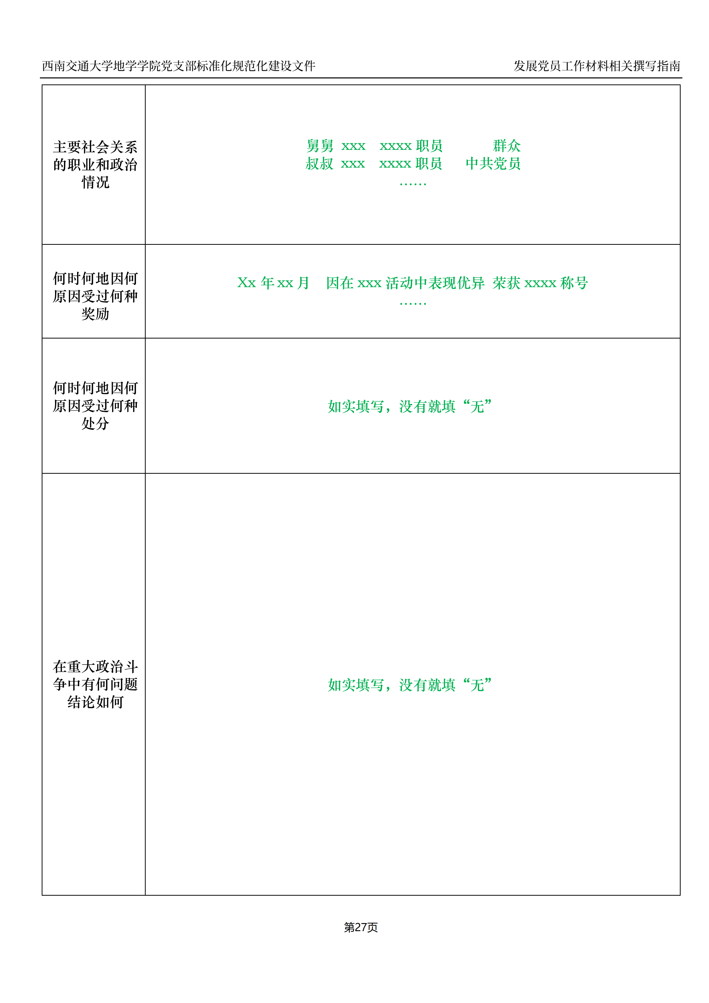 入党积极分子、预备党员培养教育考察登记表撰写指南:
