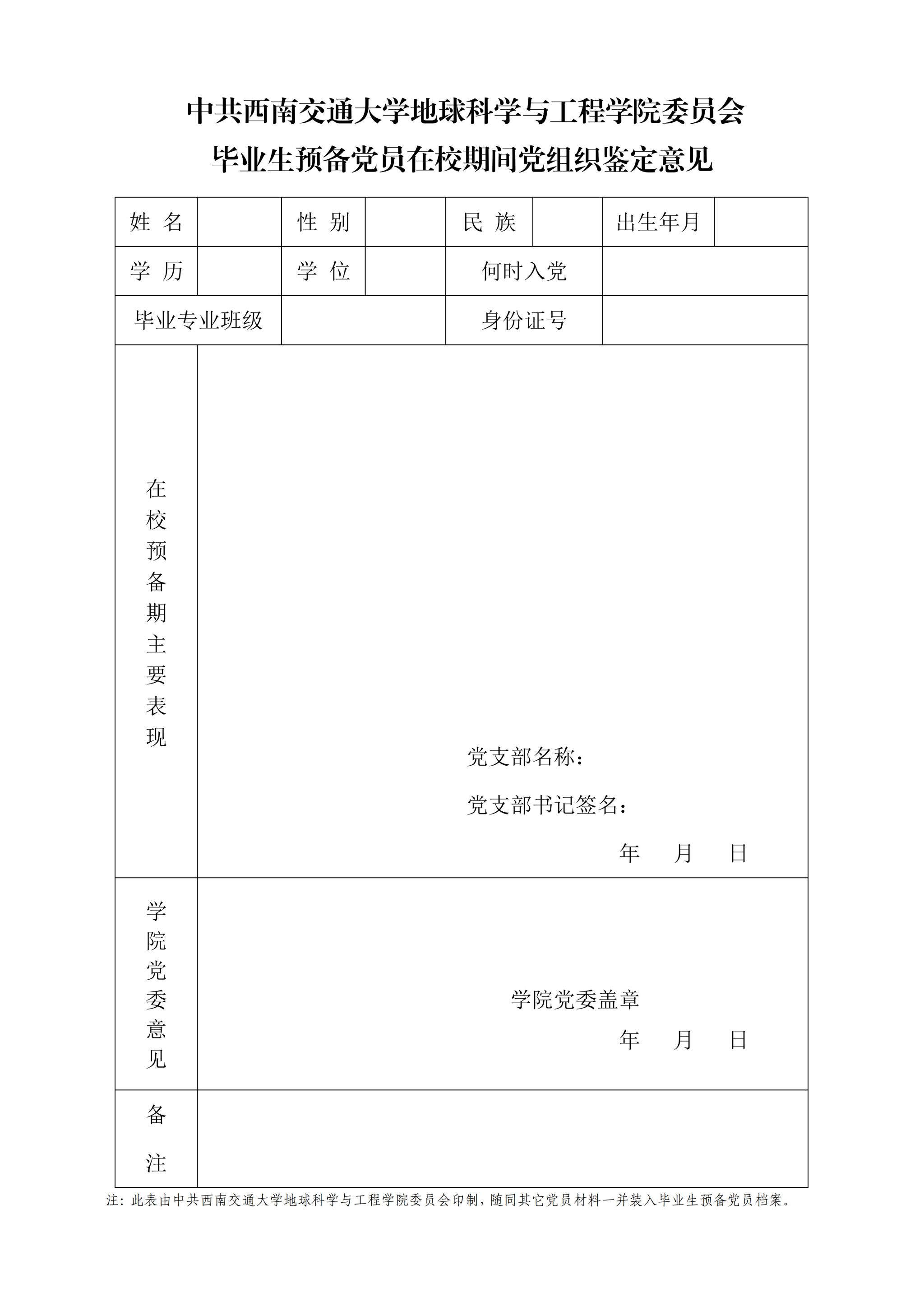 毕业生预备党员及入党积极分子在校期间党组织鉴定意见