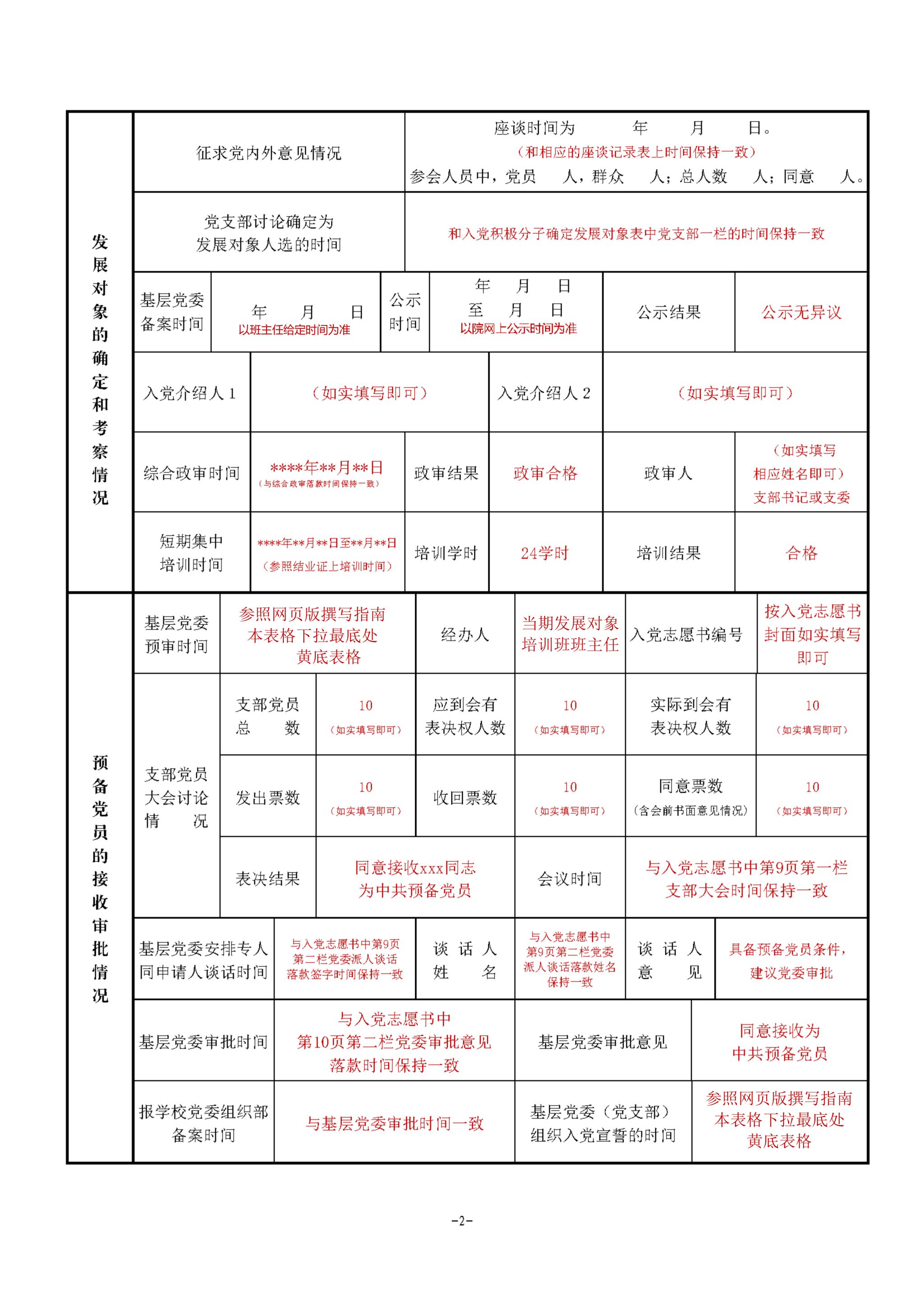 版本1:适用于在本院提交入党申请后,全程一直在本院发展入党的同志(适用于院内绝大部分发展入党的同志)