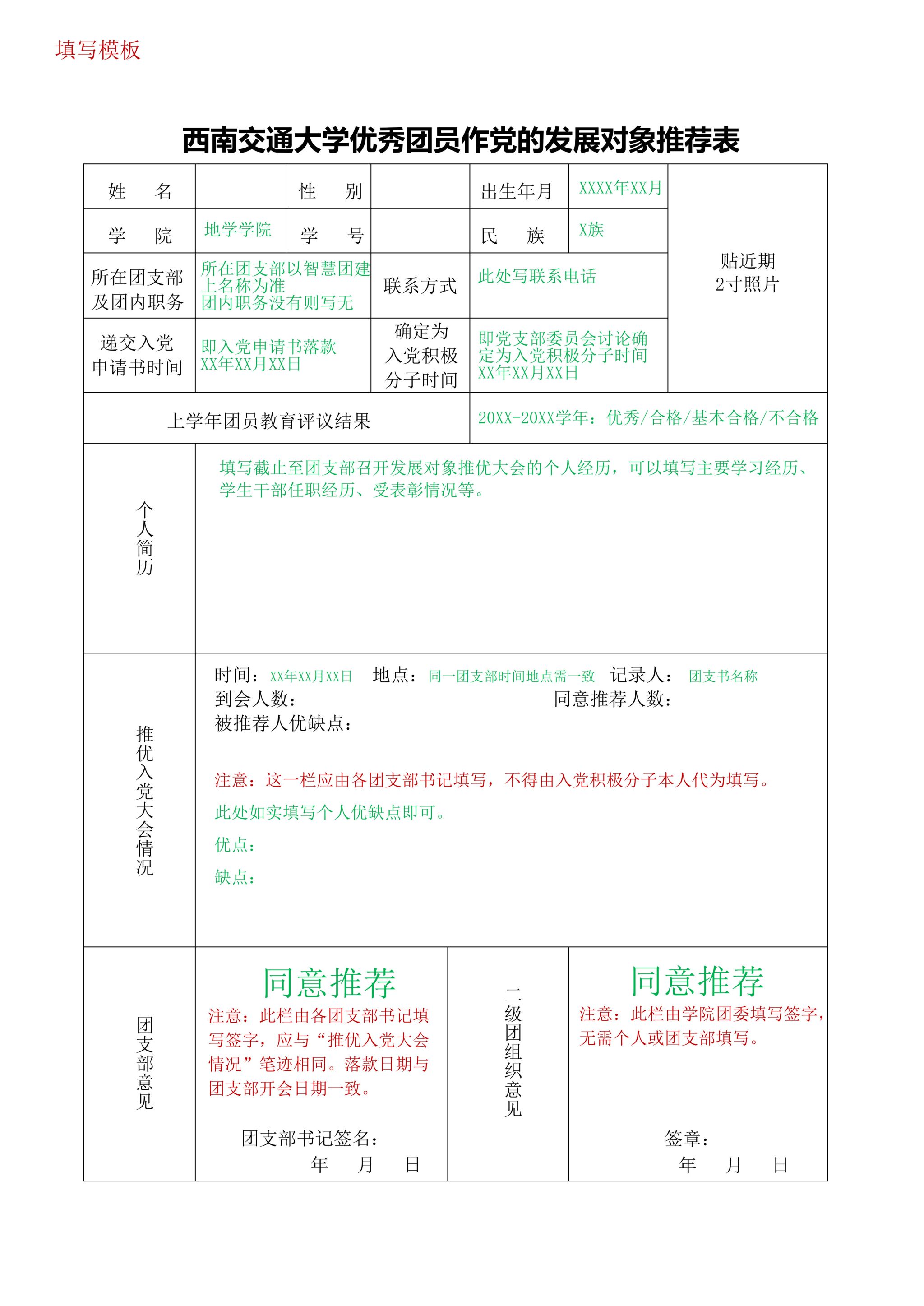 BEATS优秀团员作党的发展对象推荐表样例及撰写指南