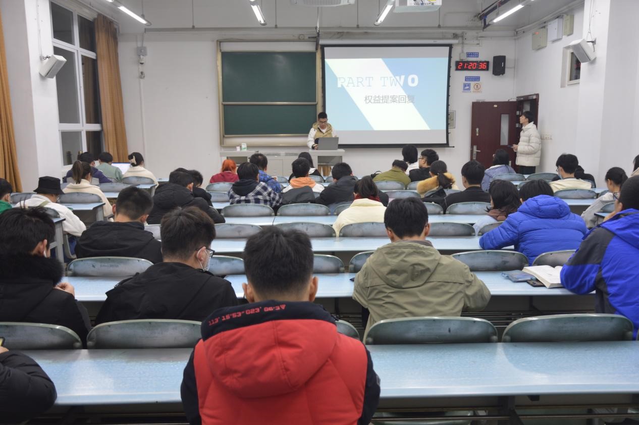陈婧对本次权益大会作总结发言。陈婧指出本次大会目的是为了解决同学们在公司中遇到的问题,满足同学们的生活需求,打造一个更加舒适的校园环境。