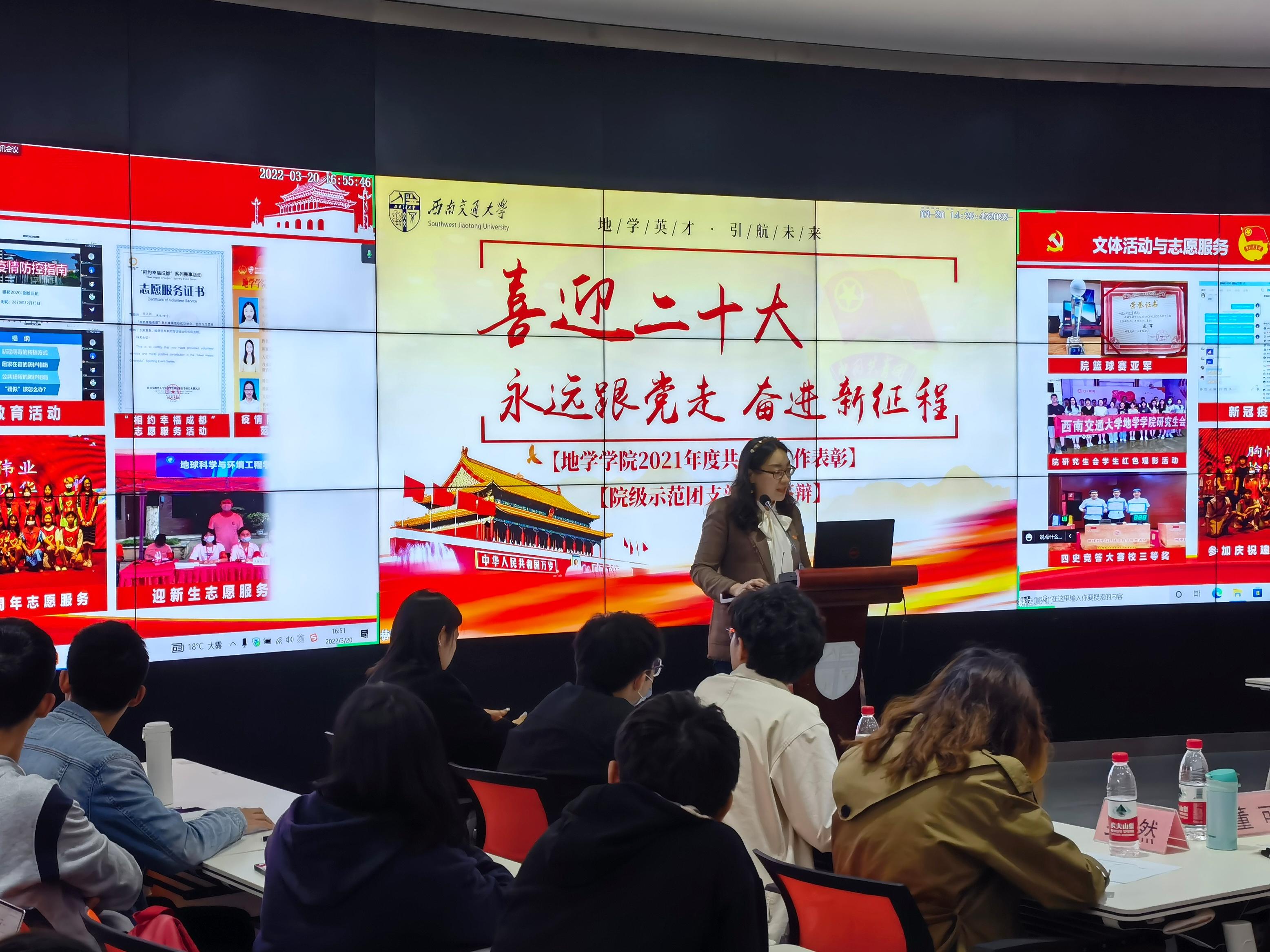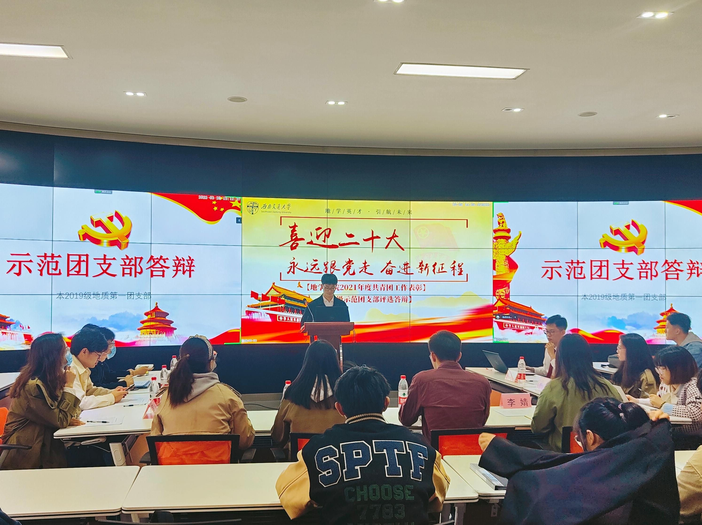 为加强团员政治教育和青年思想政治引领,提高团支部开展基础团务工作积极性,营造团支部内精勤求学的优良学风,BEATS团委于2022年3月20日在犀浦校区X4243教室举行2021年度院级示范团支部答辩会,答辩会采用线上加线下相结合的方式。BEATS团委书记杨都强,院团委副书记翟琦、李婧、董可,员工园区与事务中心指导老师王琼,学习与科创中心指导老师梁爽,青年志愿者协会指导老师罗然,团建中心指导老师赵瑞涵,员工党建工作老师刘礼钊、史可心出席并担任评委,2018级、2019级和2020级本科生及研究生共10个团支部参与答辩。本次答辩会由李宝贤主持。