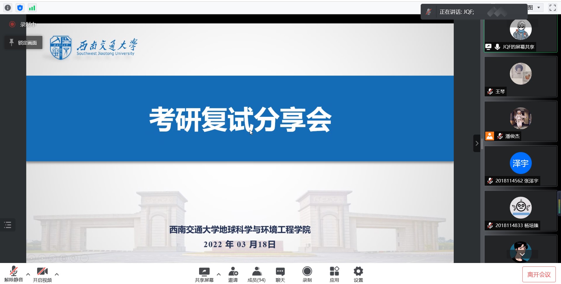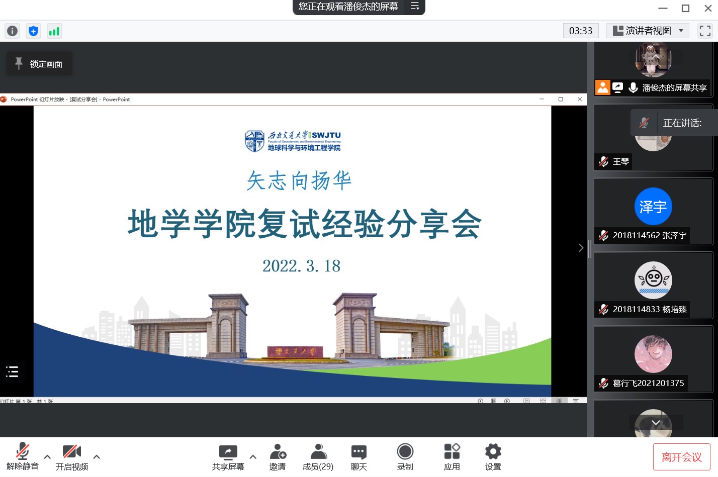 BEATS研究生会于2022年3月18日在腾讯会议成功举行了考研复试经验分享会,本次分享会面向2022届预报考公司研究生的同学,旨帮助同学建立复试信心,进而促进公司复试工作的顺利进行,本次复试经验分享会邀请到了2021级测绘、地质、资环三个专业的复试优秀代表,为2022届预报名公司研究生的同学分享他们在考研复试过程中的心得体会。