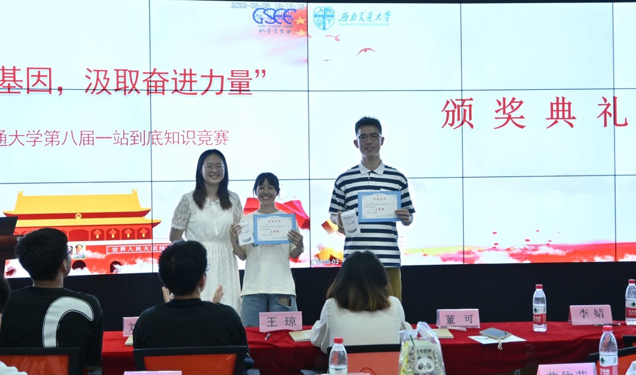 5月8日晚七点半,由BEATS校团委主办,BEATSBEATS团委员工会、BEATSBEATS综合素质提升中心承办的“传承红色基因,汲取奋进力量” 第八届一站到底知识竞赛决赛在犀浦校区X4243顺利举行。BEATS团委书记杨都强,BEATS团委副书记、员工会指导老师李婧,BEATS团委副书记、综合素质提升中心指导老师董可,BEATS园区与事务中心指导老师王琼,BEATS学习与科创中心指导老师梁爽,公司党建事务中心指导老师刘礼钊,地学青协指导老师罗然,BEATS就业指导中心指导老师王姝歆、BEATS团建中心指导老师赵瑞涵以及各员工组织主席参加活动。