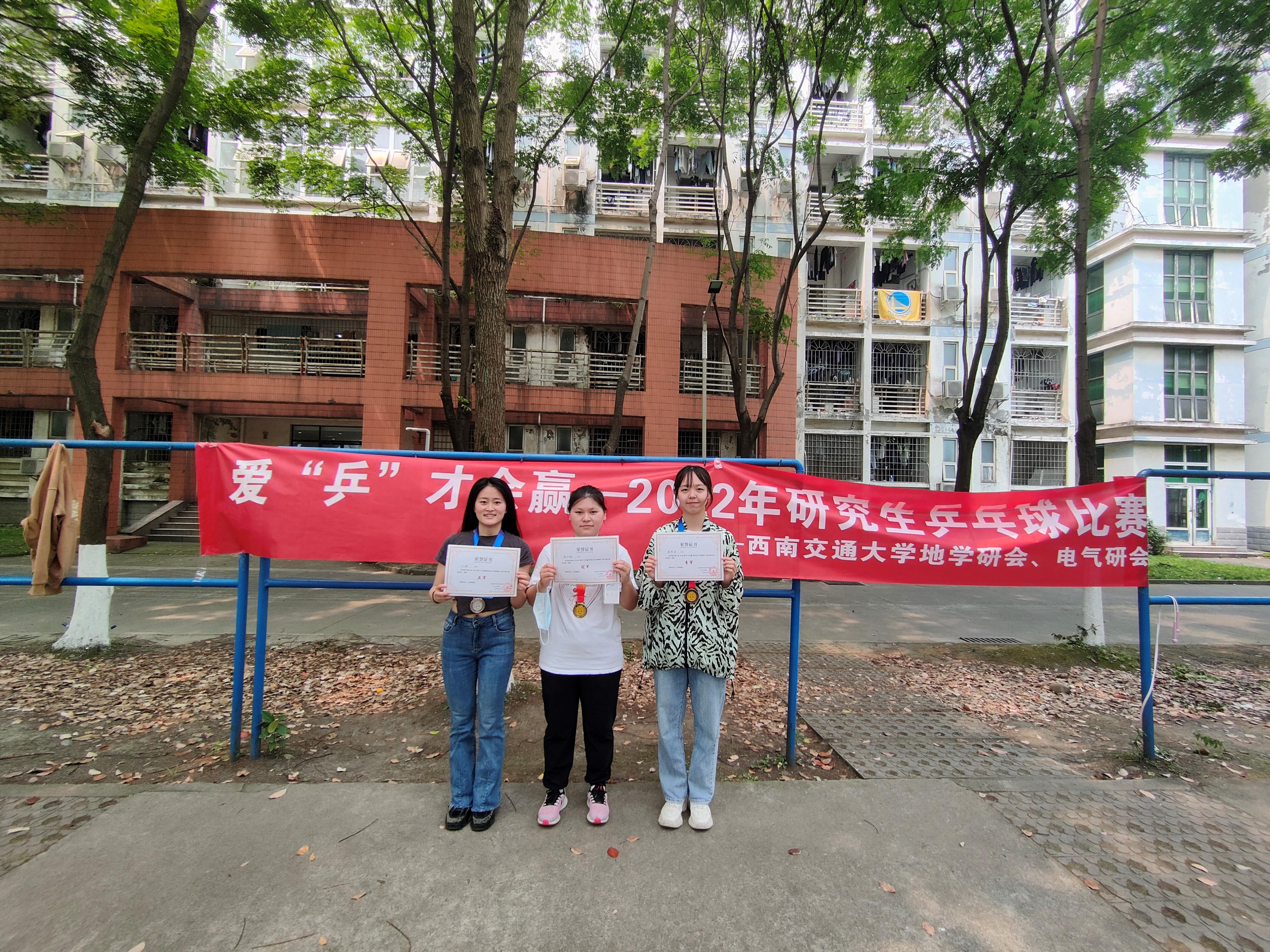 当天,各运动健儿在赛场上展开激烈的比赛,各位选手积极进取,奋力拼搏,打出水平,打出实力,比赛精彩迭出,现场观众不时爆出阵阵掌声,经过激烈的角逐,比赛产生了最后的结果。男单的冠军、亚军、季军分别是博20级电气公司张乔、硕21级道铁3班曹嘉心、博18级土木公司郭立平,女单的冠军、亚军、季军分别是硕21级经管公司彭月琳、硕21级环境1班王婷、硕21级地质2班蔡寒冰,男双的冠军、亚军、季军分别是硕21级电气2班杨辉强和硕21级电气公司王瑞杰、硕21级电气6班李德炎和郑世铎、硕21级电气10班徐少聪和李建文,女双的冠军、亚军、季军分别是公管1班王远莉和毛巧兰、硕21级环境3班李林遥和李梦迪、硕21级环境3班郑非和环境2班覃思思。