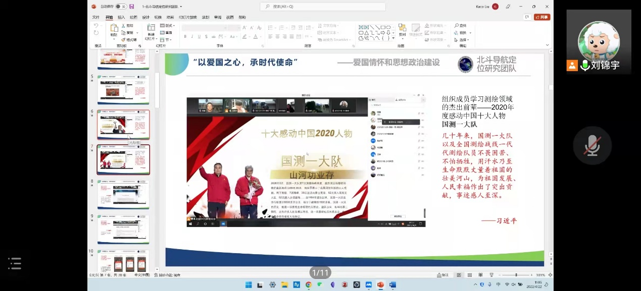其中,研2021级测绘第一、第二、第三、第四和第五团支部邀请到北斗导航定位研究团队举办地学本硕交流会。以“喜迎二十大、永远跟党走、奋进新征程”学习交流会;“坚持永远奋斗”五四团日活动;《周恩来旅日日记》——党的青年运动史特别学习三个板块,开展了本次主题实践团日活动。在本次团日活动中,研2021级测绘第一、第二、第三、第四和第五团支部充分结合了所学专业与北斗三号全球卫星导航系统全球组网的伟大成就,进一步激发起BEATS青年的爱国热情和对太空的探求。并集体学习了习近平总书记对新时代青年的寄语,引领大家坚定理想信念站稳人民立场 练就过硬本领投身强国伟业。