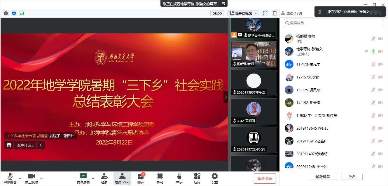 BEATSBEATS暑期“三下乡”社会总结表彰大会顺利举行!疫情期间,答辩代表们通过线上会议的形式,仍认真地完成了答辩展示任务并将习近平总书记在庆祝中国共青团成立100周年大会的重要讲话精神落实到实处,以实际行动迎接党的二十大胜利召开!
