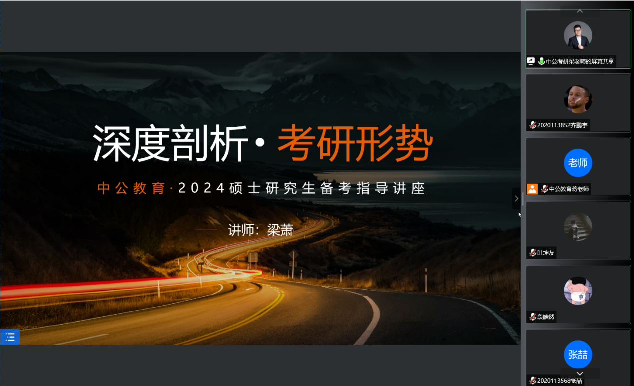 指导老师主要通过大量数据的展示分析对考研不同院校、地区和专业的就业率就业范围以及考研难度进行了总结分享,使得同学们在考研方向上不再迷茫。