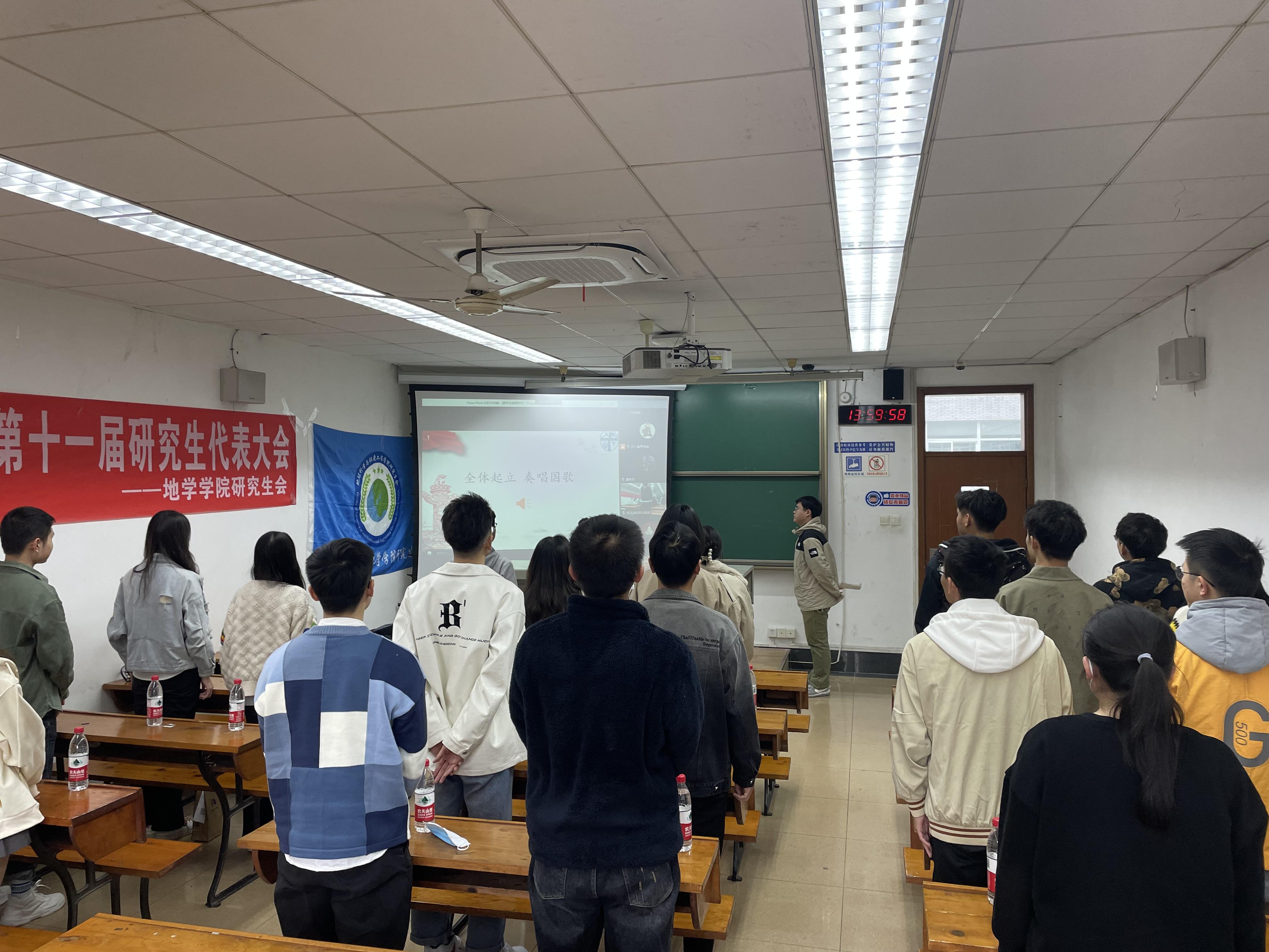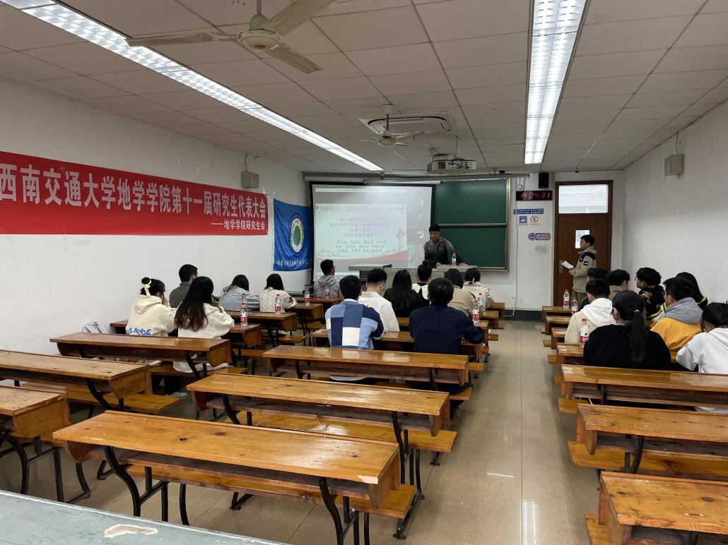 大会进行第三项议程:12名研究生代表进行自我介绍以及提案发言,他们作为每个班级自主选举的研究生代表,秉持全心全意为同学服务的宗旨,勇于肩负起责任与义务,收集研究生同学们遇到的问题以及针对问题提出的建议,并以提案的方式提交给地学研会。