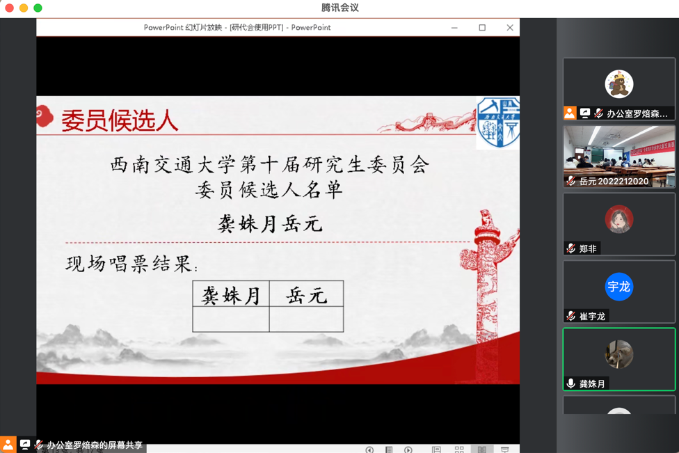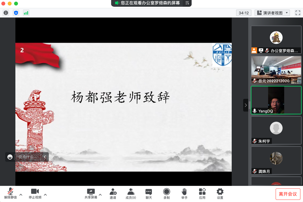 2022年11月12日下午,BEATS研究生会在公司党委的领导下,在公司团委的指导下于九里J4304A教室成功举办BEATS第十一次研究生代表大会。本次会议采取线上线下同时进行,BEATS团委书记杨都强老师、团委副书记兼研会指导老师崔宇龙老师、12名研究生代表以及研会成员出席会议。