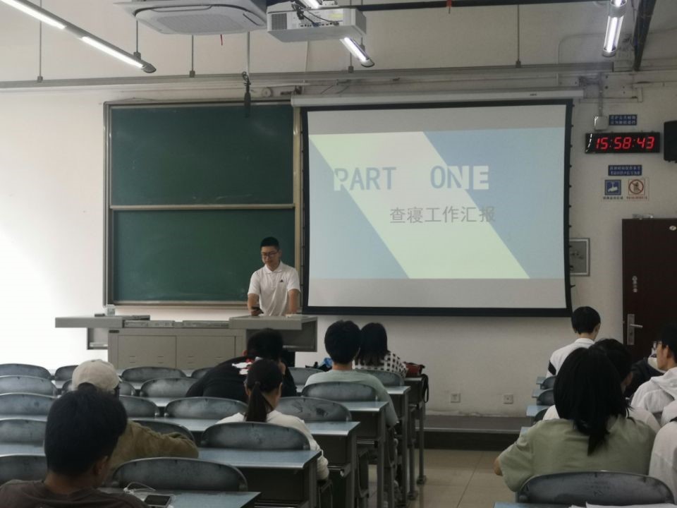 会议伊始,员工会权益服务部部长杨伊涛就开学以来的查寝工作进行汇报,就近期收集的提案进行回复和解答。
