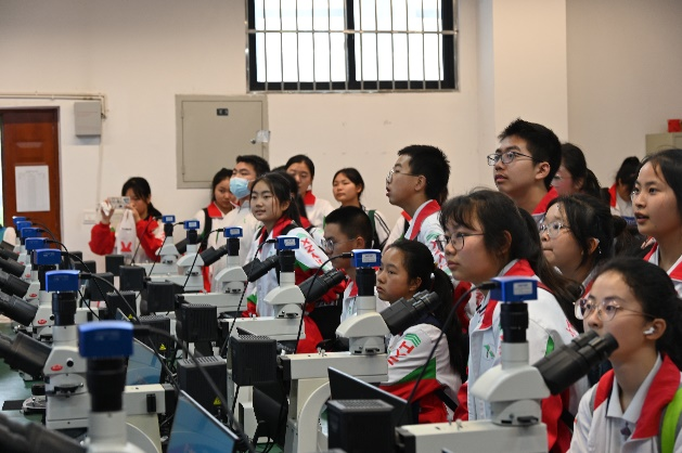 用餐休息后,在BEATS志愿者的引导下,怀远中学师生前往参观高速铁路安全运营空间信息技术国家地方联合工程实验室。由环境系副教授张胜利老师、何杨老师为同学们介绍环境实验室实验仪器,讲解仪器基本操作及原理;地质工程系裴秋明副教授带领同学们认识、辨别岩石种类,普及地质学科相关知识,老师及同学们的热情讲解,引起了同学们的浓厚兴趣。