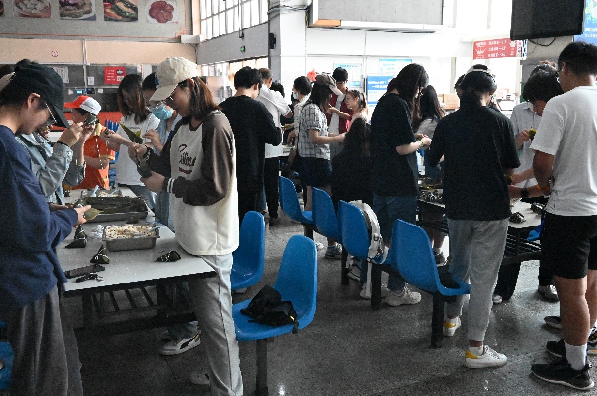 本次活动末尾,同学们统一前往一食堂,在食堂工作人员的指导下亲手包起了粽子。最后,食堂将大家的作品统一烹饪,大家兴奋地品尝着自己的动手成果。