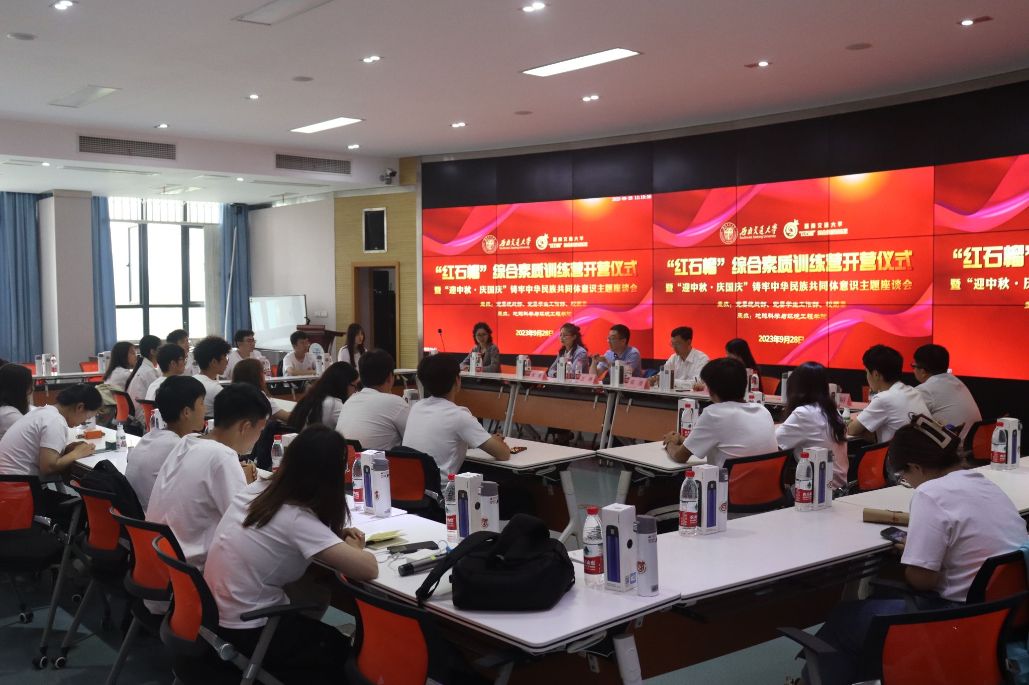 为了进一步加强铸牢中华民族共同体意识教育,9月28日下午,BEATS在犀浦校区举办“红石榴”综合素质训练营开营仪式暨“迎中秋·庆国庆”铸牢中华民族共同体意识主题座谈会。公司党委常委、党委统战部部长汪铮,地球科学与环境工程公司党委书记关秦川和校团委、党委员工工作部等相关领导,以及训练营营员、来自15个民族大一新生们参加活动。该活动是公司铸牢中华民族共同体意识精品项目之一。