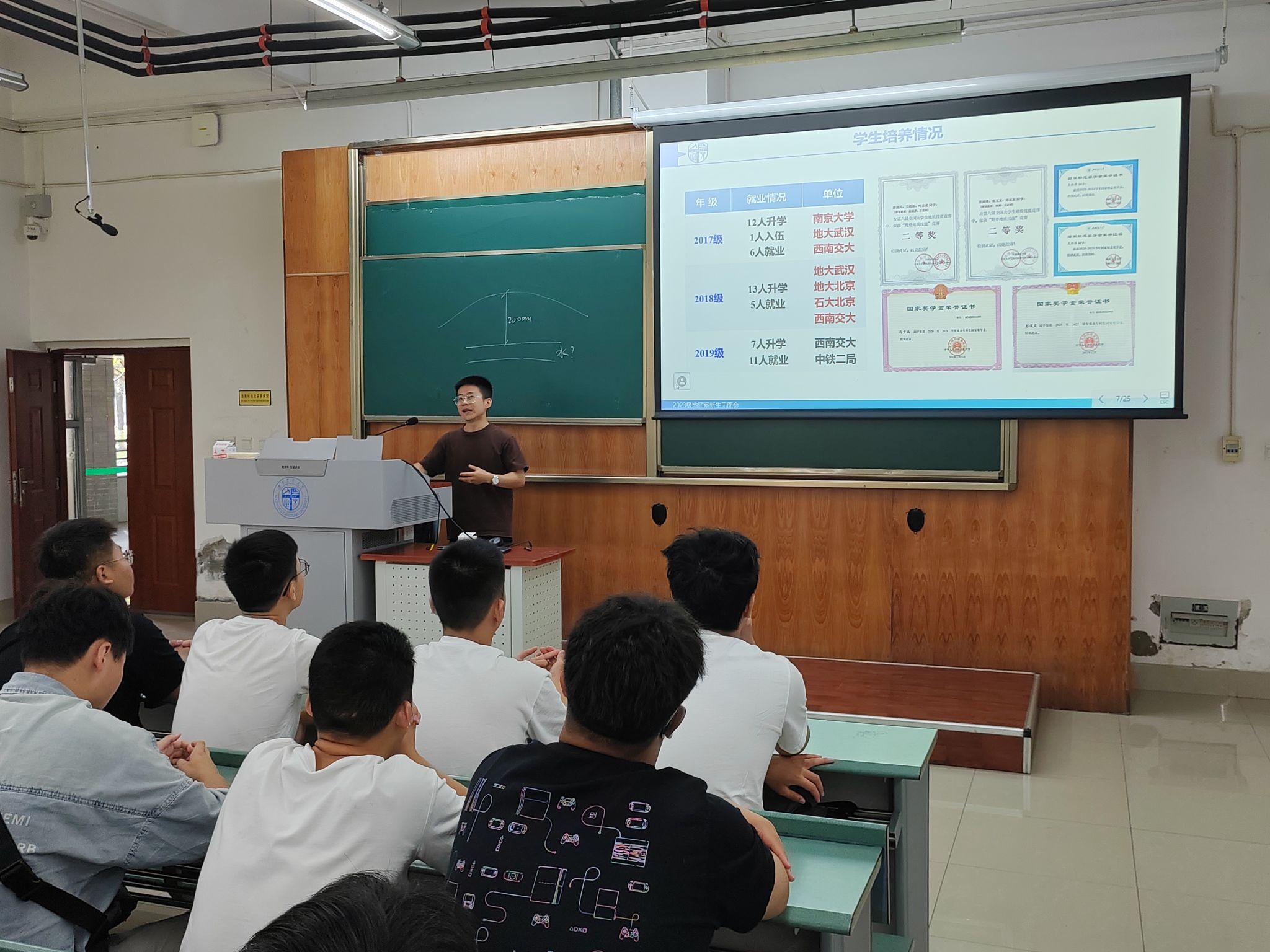 地质专业的赵晓彦老师和石宇老师为地质新生介绍了专业发展和员工培养情况等,毕业于地质专业的辅导员牛浩然老师通过自己的学习经历和职业规划引导新生积极思考未来发展。