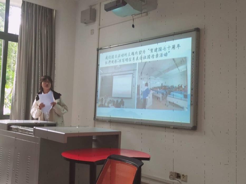 2019级环境第六团支部的答辩人高一帆,答辩过程自信流畅。在本次团日活动中,该团支部积极动员支部成员,通过赏析电影《建党伟业》中辛亥革命、五四运动、中共建党部分经典片段,让广大团员干部群众在重温历史、缅怀先烈、仰慕英雄的氛围中接受爱国主义教育,进而增强大家的爱国、爱党激情;通过学习先辈党员的事迹,提高自己的党性修养。并用明信片抒发对家国的感情。
