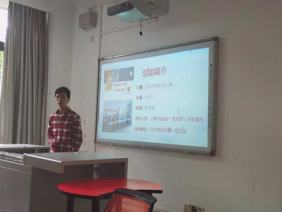 2018级测工第一团支部,用有趣的小型户外运动会唤醒爱国青年的活力;2018级环境第四团支部,开展“枪械知识讲座”的爱国主义教育小课堂,活动的同时学习有趣的知识……周青老师说到:“团日活动为大家提供了一个对社会、对祖国抒发情感和观念的平台,各班团支书要能够引导同学们了解祖国各式各样的风采、表达自己的感受。团日活动的活动平台和范围将越来越开阔,希望各团支书能够积极创新,令团日活动更加出彩。”本次团日活动中每个团支部都用自己独特的方式表达了对祖国的热爱与祝福,他们将怀着青春又热烈的感情,投入到新时代的建设中去,为祖国书写更辉煌的画卷。