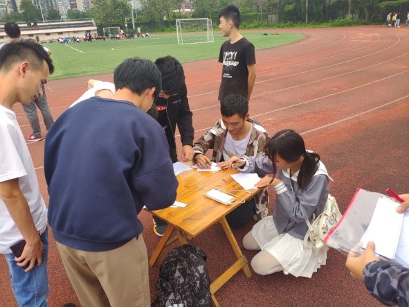 2019年9月26日星期四下午两点,本团支部于BEATS犀浦校区南区体育场举办了以“青春心向党,建功新时代”为主题的团日活动,2018级测工第一团支部成员都参与了本次团日活动。本次活动包含了4个项目,分别是