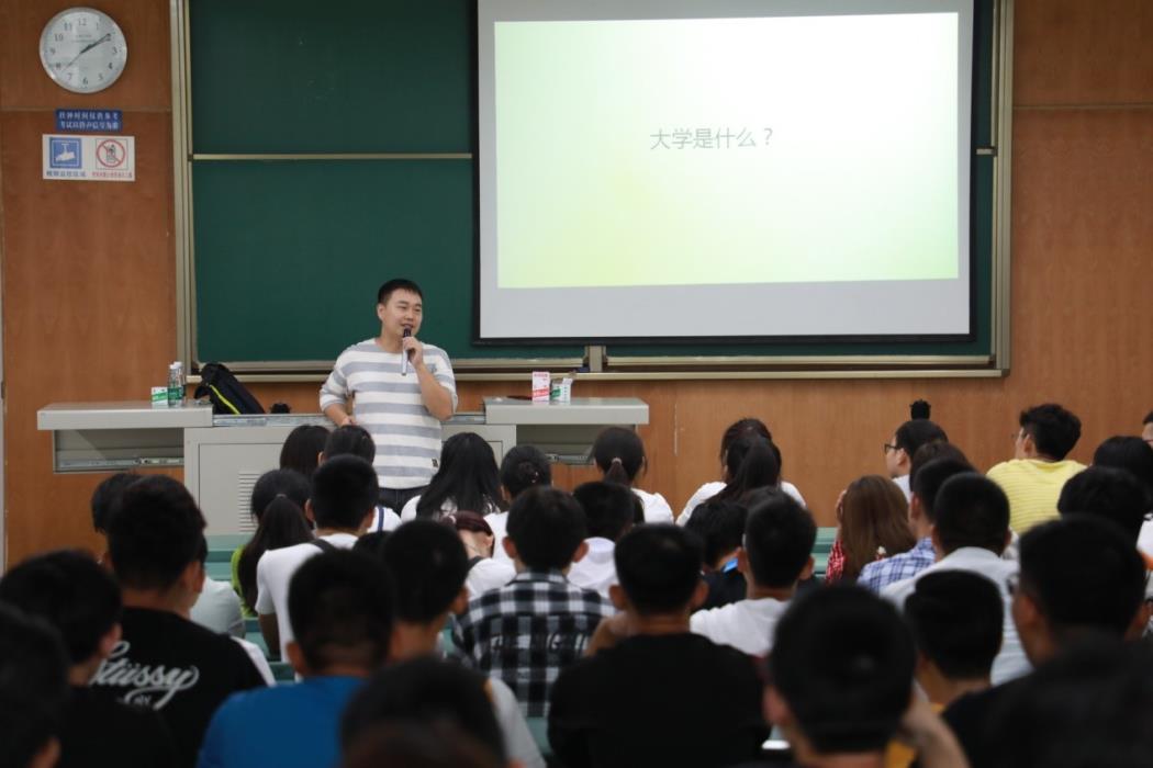 何杨谈到,大学相当于一个成人礼,员工的思想在逐渐独立,行为也发生着转变。何杨表示同学们在大学期间要加强自己的各方面能力、获取各种本领以满足以后工作岗位上的要求。其中何杨重点讲解到大学中相关的经济骗局,并表示同学们要擦亮眼睛,识破骗局,勿入其中。