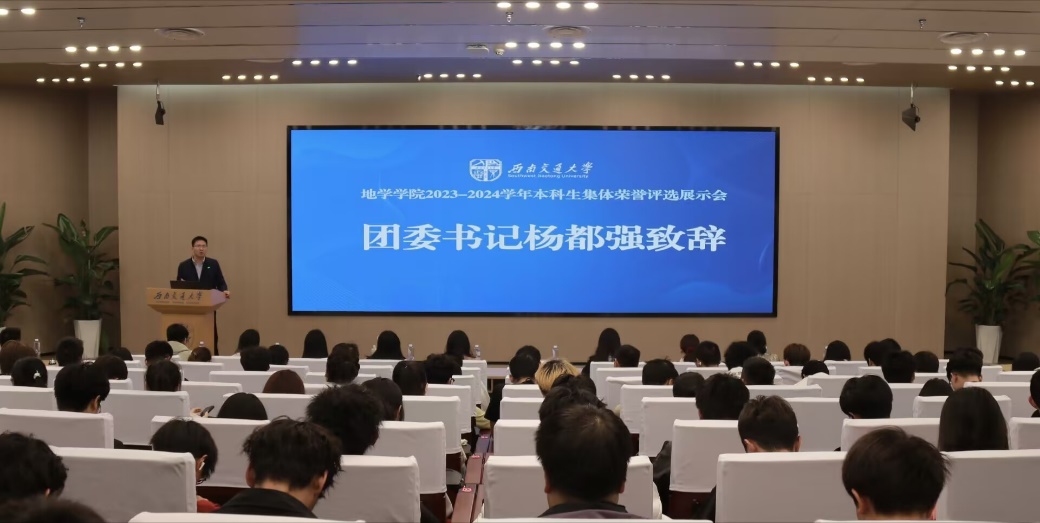 会议伊始,杨都强老师的开场致辞穿越时空,串联起历史与当代的脉络。他回顾了六十年前的今天——我国首颗原子弹的成功试爆,以此激励在座师生铭记前辈们的艰苦奋斗,珍惜当下和平发展的机遇。同时,杨老师对地学学子提出传扬地学文化,将小我融入家国大我,树立爱国报国远大志向的三个要求,获得在座师生的热烈掌声。