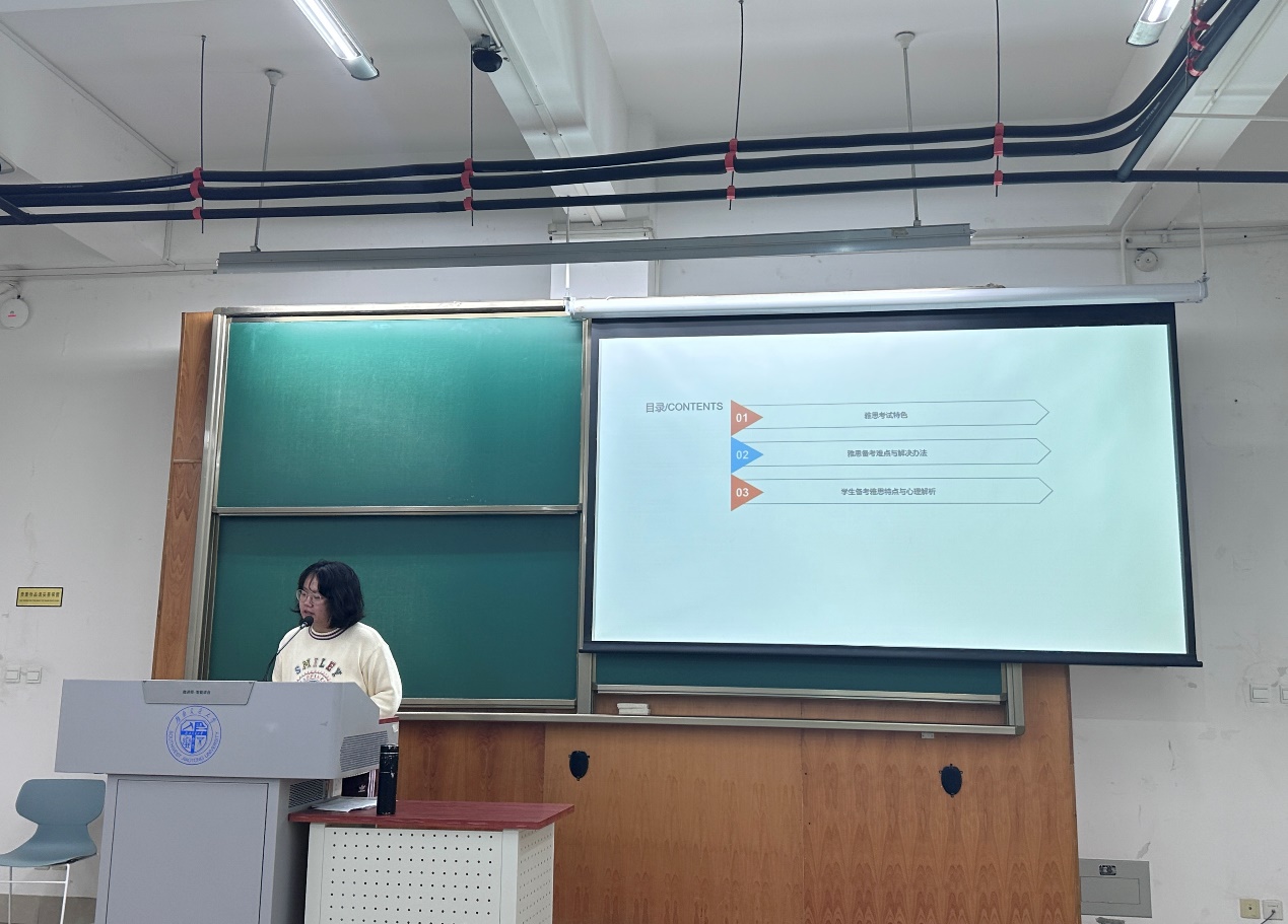 首先发言的是王艺诺同学,她认为英语学习是水滴石穿,非一日之功,需要保持长期的英语学习习惯,日积月累,才能提高英语素养。在刷题时,同学们需要结合自身短板,并运用相应做题方法,针对性做题,才能真正做到有的放矢。在考试前一晚,仍要坚持刷题,以保持做题手感。