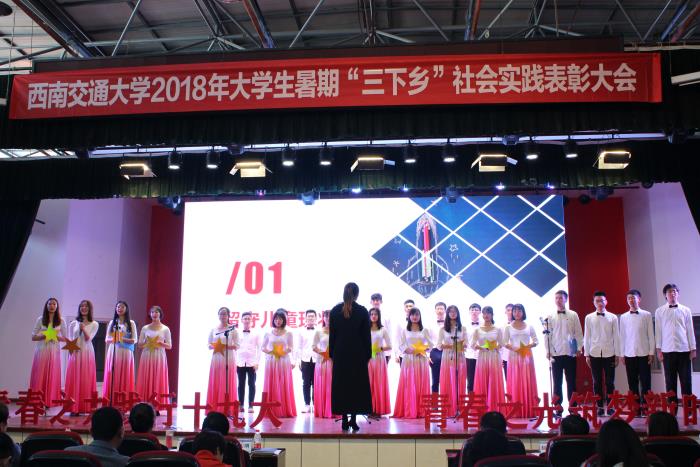 在风采展示环节,数支优秀团队围绕“实践筑梦新时代”、“实践启迪少年梦”、“实践共谱民族情”、“实践弘扬交大魂”四个篇章带来了精彩的节目。第19届研究生支教团和生命科学与工程公司实践队以《我的社会实践,我的中国梦》主题演讲,分享了他们在十九大精神宣讲、乡村调研、精准扶贫和支教服务过程中的深刻感悟。机关党委赴彭州市社会实践队通过合唱《让梦想从这里起飞》和诗朗诵,展现了他们长期关爱留守儿童的帮扶历程。利兹公司实践队以舞台剧《大难余生,十年一梦》展示师生赴汶川调研,感受民族情深,表达中华儿女共赴新生活的美好追求。青年创新创业团队“易小儿”汇报了交大学子利用科技创新成果服务社会、服务人民,主动为国家发展做贡献的故事。