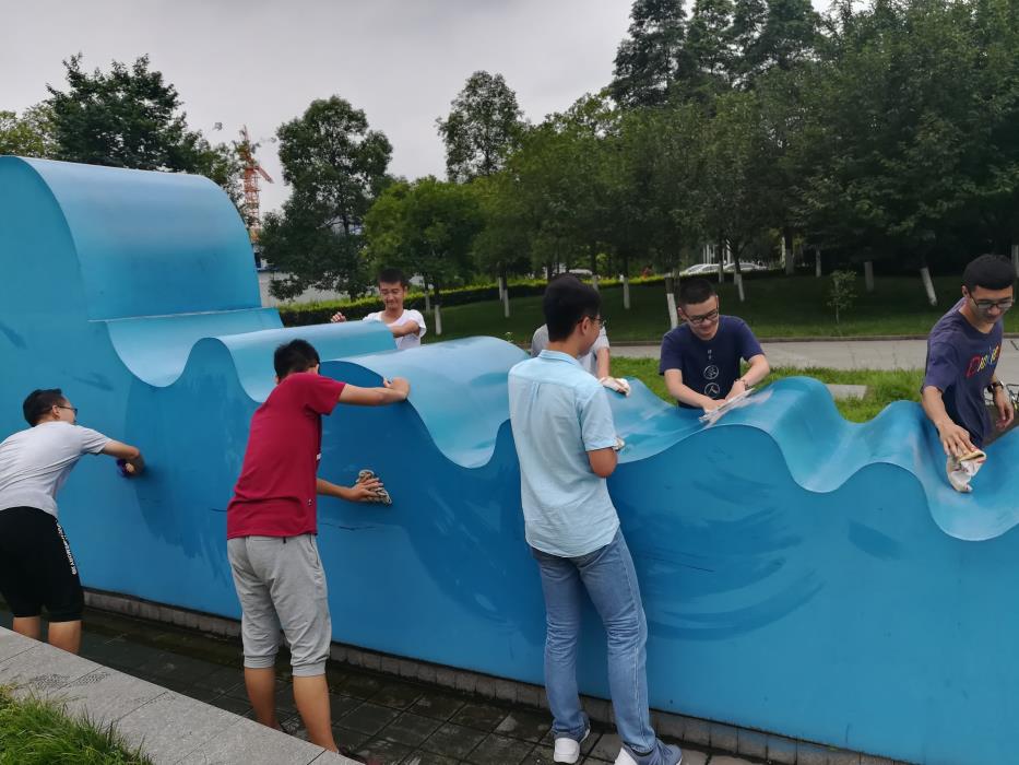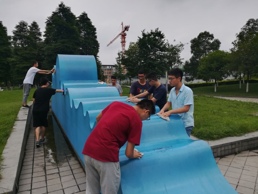 6月21日,16级地质一班团支部在图书馆附近的“大波浪”雕塑举办了“清理大波浪”团日活动。