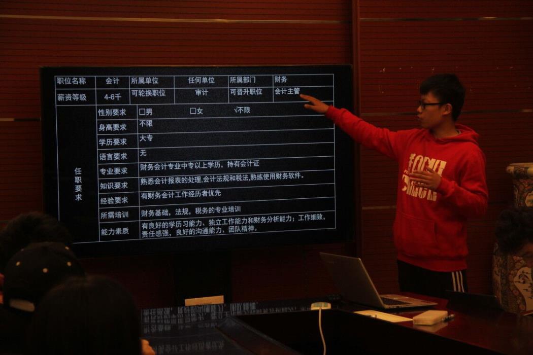 会上,分别由获得职场调研优秀的作者分享调研资讯,他们是谢常扬、包展鹏、彭勇杰、冷羽、王潇雪。介绍内容涵盖了:任职要求、工作条件、沟通关系、工作范围等几个大方面,同时对各自对应的职业中身高、学历、知识、经验的要求做出了详细说明;调研各行业具体岗位的准入门槛、实际工作内容、福利待遇、后期发展等,还原某职业真实情况,帮助同学们正确判断职场现状,降低员工就业后的心理落差,也可以积累职业指导资料,为“职业世界探索”教育提供素材。