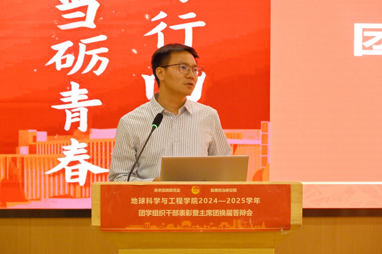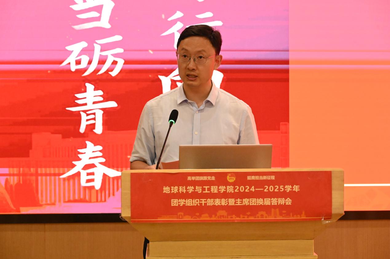 答辩结束后,BEATS团委书记杨都强老师作总结发言。他强调,地学学子幸逢盛世,趁青春应当深耕自我。衷心希望每一位团学组织骨干成员能在未来的学习工作中,彰显“地学英才,引航未来”的风采,勇担使命,砥砺前行。