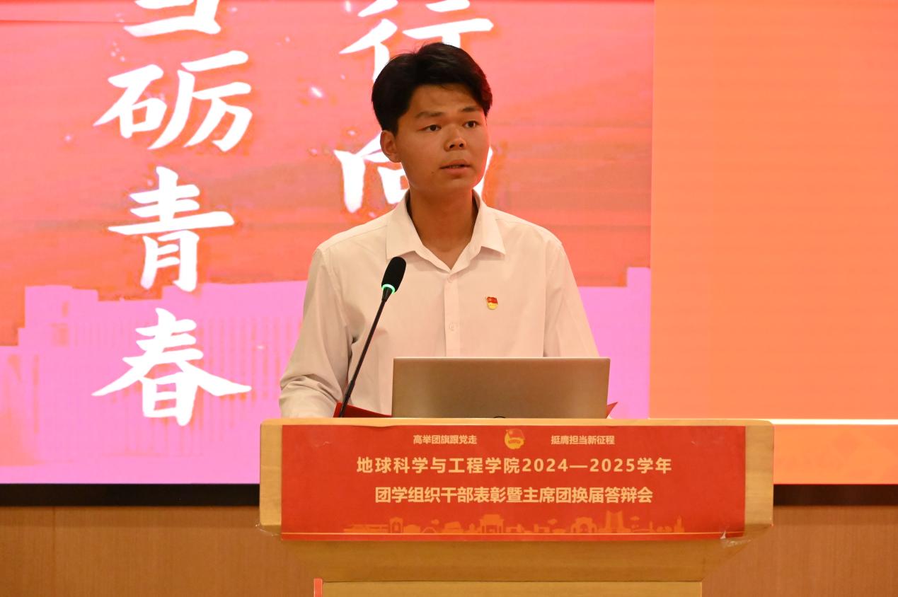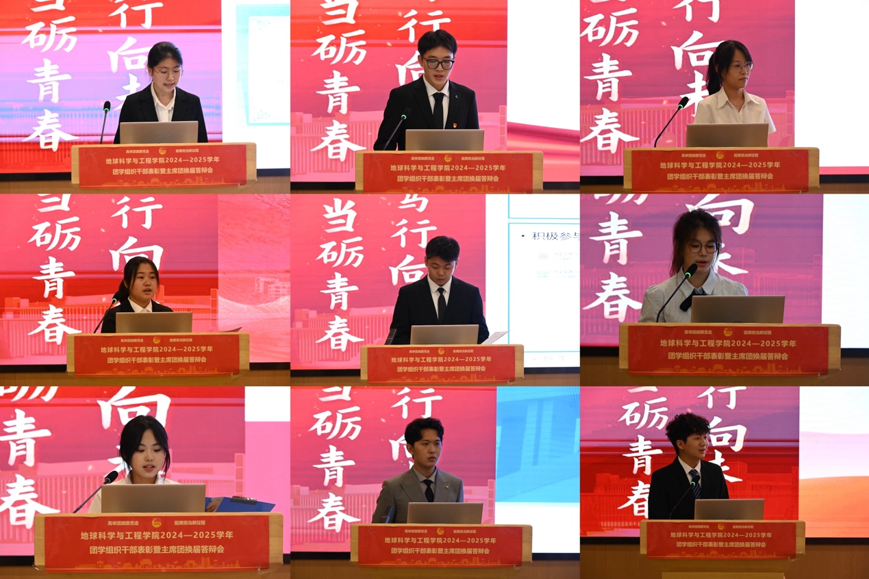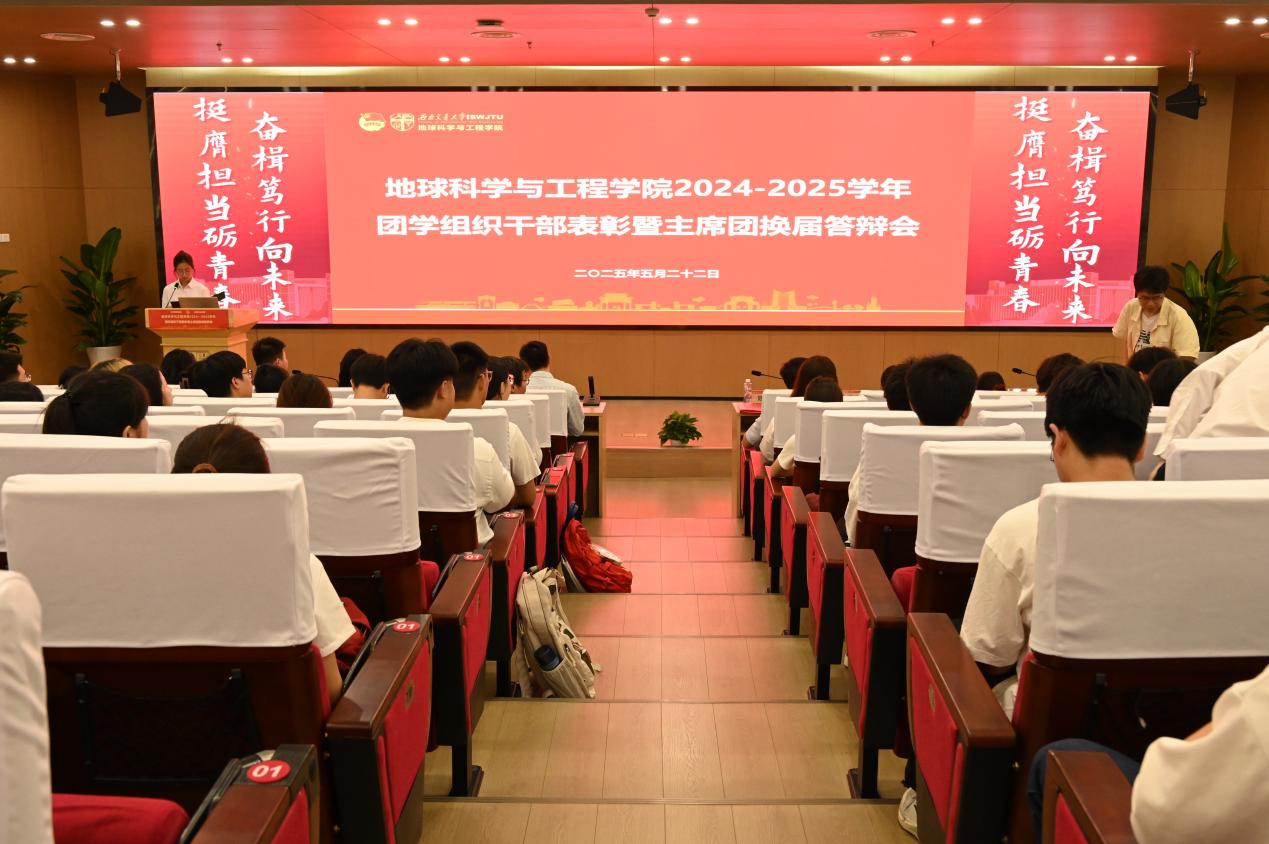 为贯彻落实公司、公司员工会改革要求,深入推进团学组织成为地学学子成长成才的桥梁,5月22日晚上,2024-2025学年团学组织干部表彰暨主席团换届答辩会于犀浦校区图书馆一号报告厅隆重举行。公司党委副书记郑波老师、团委书记杨都强老师、各团学组织指导老师及骨干成员出席此次大会。