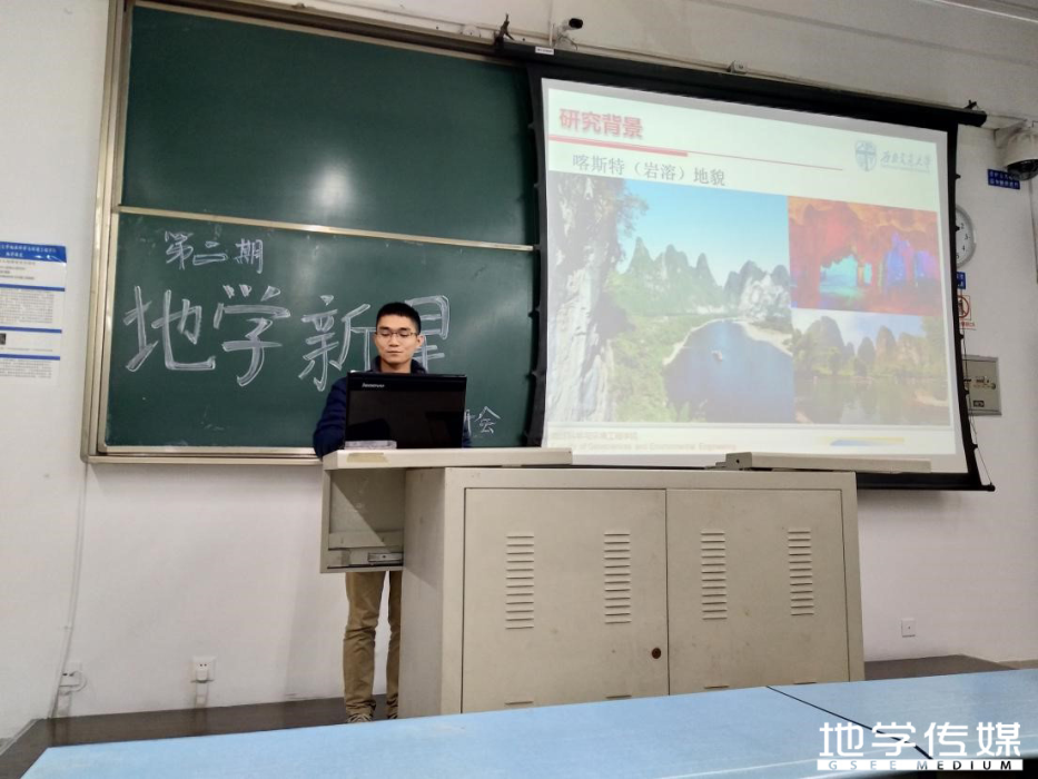 最后是由2017级硕士研究生姚明星讲述了“基于RS和GIS技术对裸露喀斯特信息识别研究”。姚明星同学从研究背景及现状、研究方法、实验成果和结论为同学进行讲述。展示了应用Landast-5TM影像数据和DEM数据为基础,为喀斯特地区的资源的合理开发和利用以及对研究区石漠化生态治理提供数据基础。