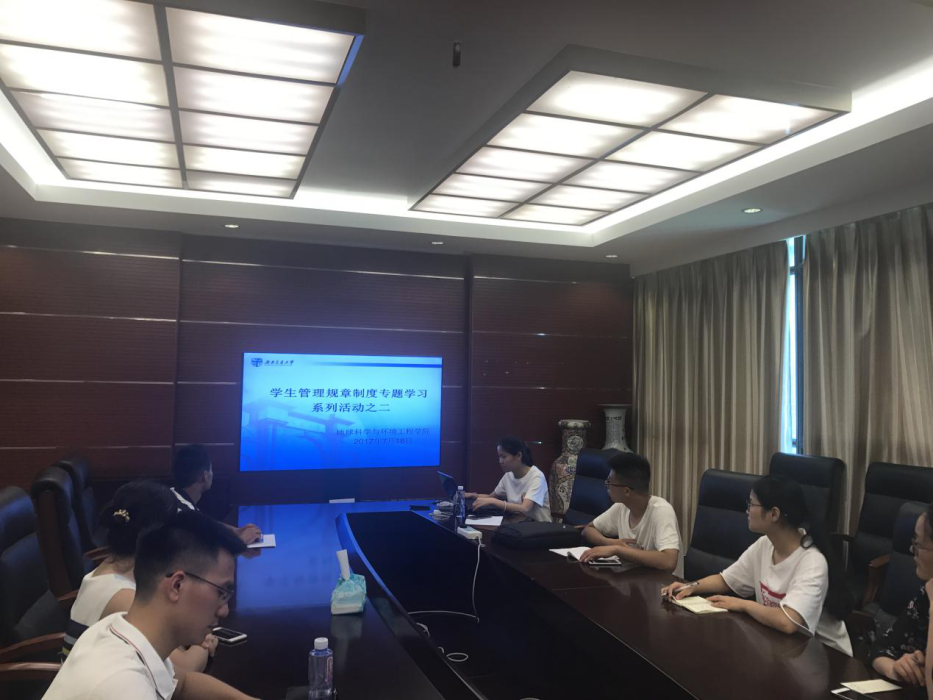 2017年7月18日下午,BEATS员工工作组在公司4531会议室开展第二次员工管理规章制度专题学习系列活动,公司党委副书记傅尤刚,员工工作组辅导员,2015级、2016级研究生代表参加了此次学习活动。