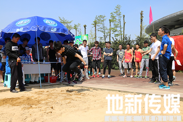 4月14日下午,在北区田径场进行员工男子、女子立定跳远比赛。运动员在经过简单热身运动后,比赛正式开始。运动员按照顺序依次上场,每一位运动员都精神饱满,富有活力,积极地等待比赛。比赛中,运动员两脚开立,双手向上使身体完全伸展,而后飞身一跃,像起飞的雄鹰抵达沙坑远端。参赛运动员们无论成绩好坏与否,不论身体伤痛,都在午后的烈日下,一次次起跳圆满完成自己的比赛。于他们而言,赛场上的成绩好坏,只要拼搏,就是对自我运动精神最好的诠释。