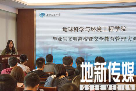 4月20日下午,在X4520举办2017届本科毕业生文明离校暨安全教育管理大会。本次大会由2013级辅导员李婧老师主持,辅导员王静雅及全体大四班长、学习委员参加了本次大会。