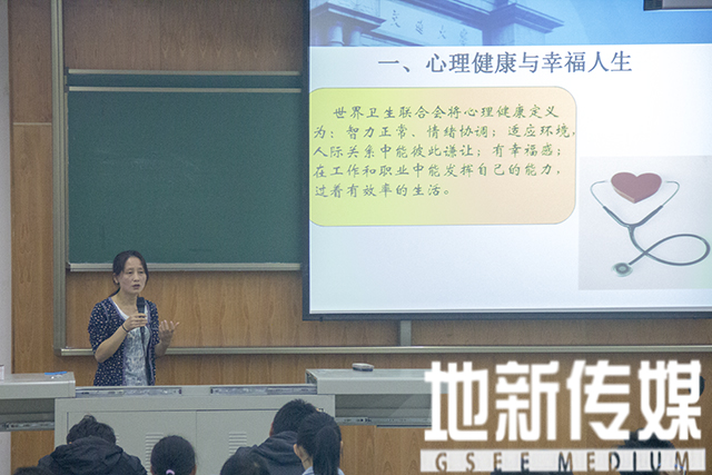 张老师由一个“谁动了我的奶酪?”的故事指出当环境发生变化时,我们要主动适应环境,同时由故事逐步地将同学们引入今天的主题:阳光心态,幸福人生。张老师为同学们介绍了心理健康与幸福人生的概念,并以“小丽”的实例向同学们强调,心理问题时刻围绕这我们每个人,如何树立阳光心态是老员工面临的重要问题。张老师随后从生理、心理、社会行为三个方面为同学们介绍了心理健康的内涵。张老师在讲到新生不适应感和失落感时,她细心地询问新生是否有不适应感,失落感等问题并耐心地为同学们解答。之后张老师讲到老员工认识自我常见问题是自我认知出现偏差。张老师为同学们从“自我中心”、“盲目从众与虚荣”等7个方面介绍了自我认知出现偏差会导致的后果。为了预防心理出现问题,张老师接着讲到要对情绪与压力进行管理。张老师教给同学们“呼吸放松法”、“心理意象放松法”、“肌肉放松法”三种放松压力的方式。最后,张老师强调心理健康如同身体健康一样重要,要有健康意识,同时要积极预防。