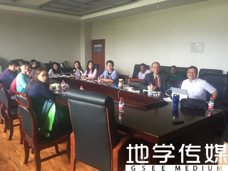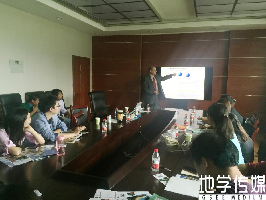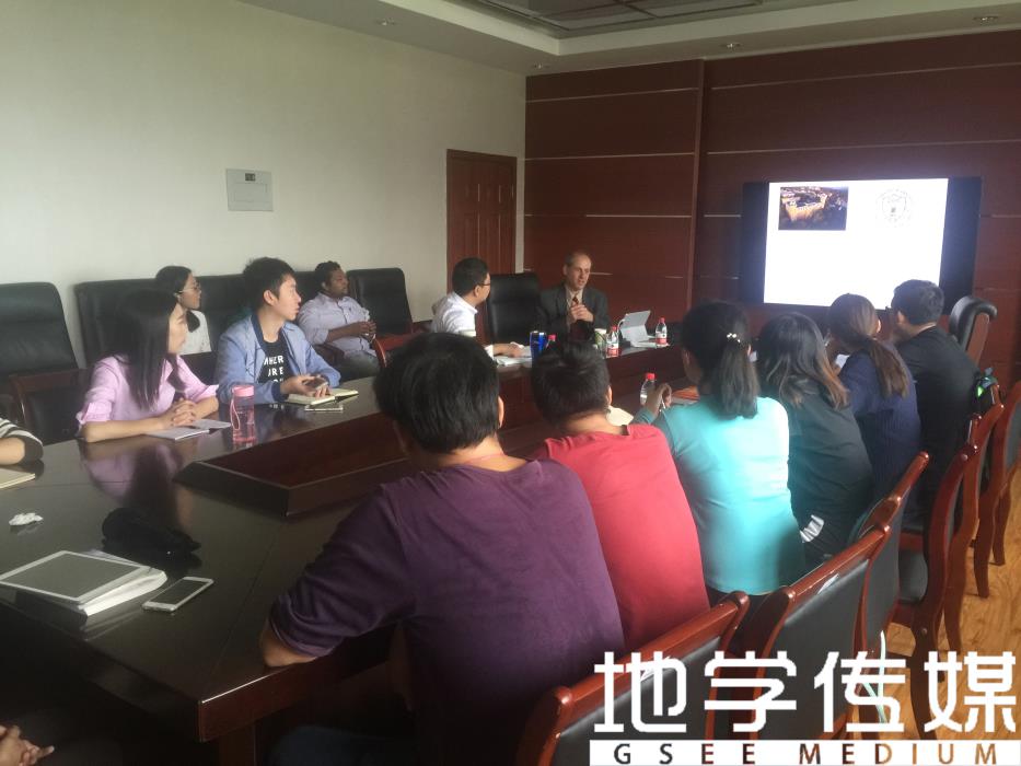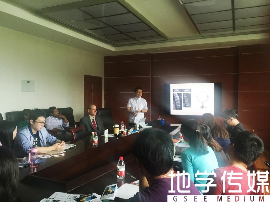 Peter教授主要介绍了阿肯萨斯大学的概况以及他的主要研究方向,向大家讲述了环境变迁导致的牙齿的变化与人类进化的关系,激发了同学们浓厚的兴趣。随后,范美坤教授向Peter教授介绍了公司环境工程专业的概况、范美坤教授个人的研究内容与研究方向,并安排当天下午陪同Peter教授参观公司实验室。