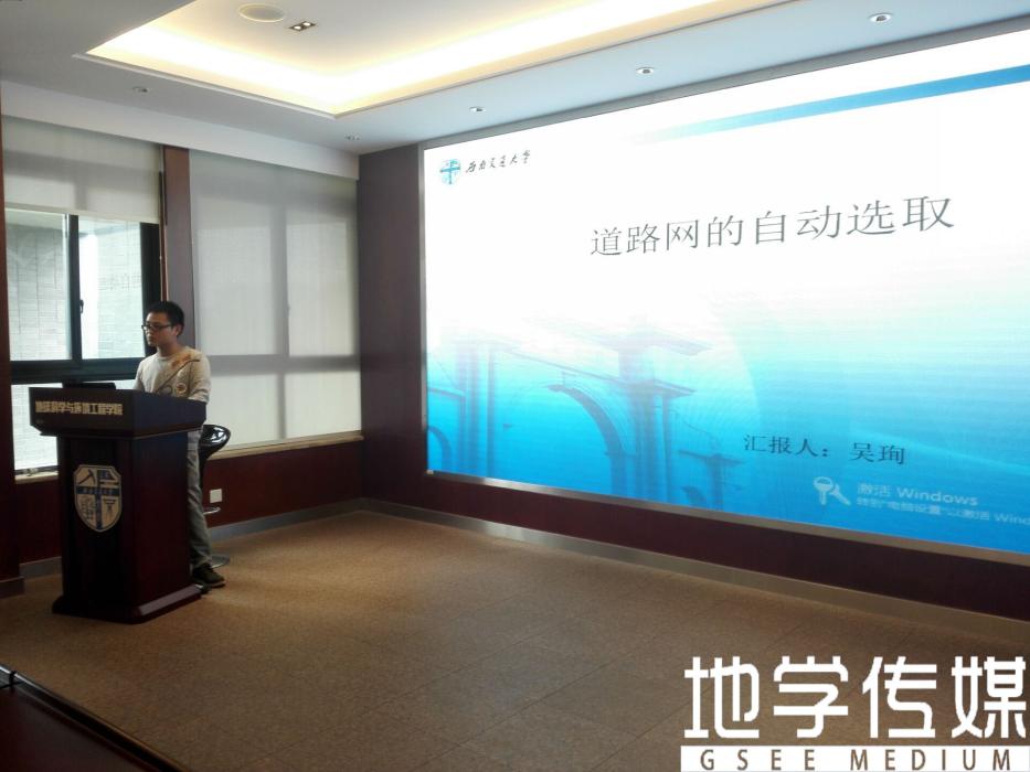 曹红业同学讲的主题是《一种基于辐射传输模型的高分二号影像大气校正方法》,通过讲述电磁波在传播过程中受到大气分子和气溶胶等成分的吸收和散射的影响这一研究背景,向我们展示了他对高分二号影像进行校正的算法描述及相应结论,并对此方面研究提出了后续研究方向。