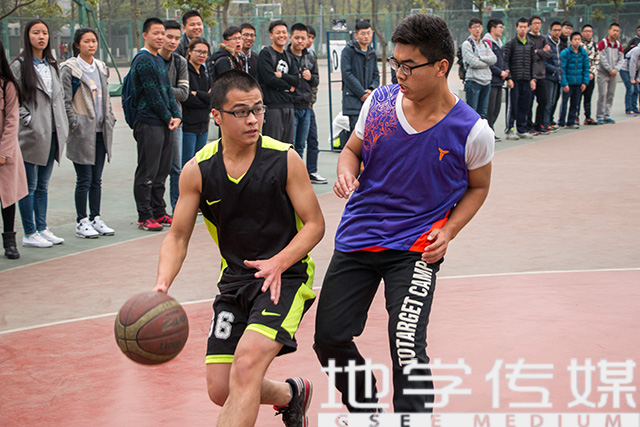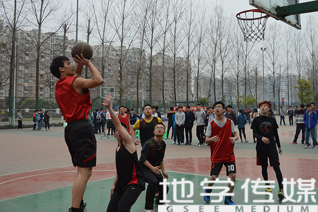 第二场比赛则是大一员工与大二学长之间的较量,15级出场的是环境五班与地质二班的队员,14级出场的是地质三班与环境三班的队员。开场后14级队员进攻态势凶猛,比分打到了8比3。可是随着15级队员的一记自信三分球的得分,鼓舞了士气使比分慢慢追了上来。半场结束时,14级10比8小比分领先。下半场两队打得不分上下,十分胶着。但14级队员紧追不放,将篮板牢牢控住,各自发挥出自己最佳的实力,最后14级以16比14险胜15级队员。