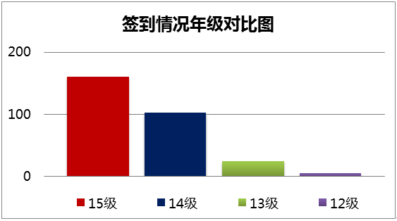 经有效数据分析,这14天中,参与活动的同学共291人,其中12级同学5人,13级24人,14级102人,15级160人。