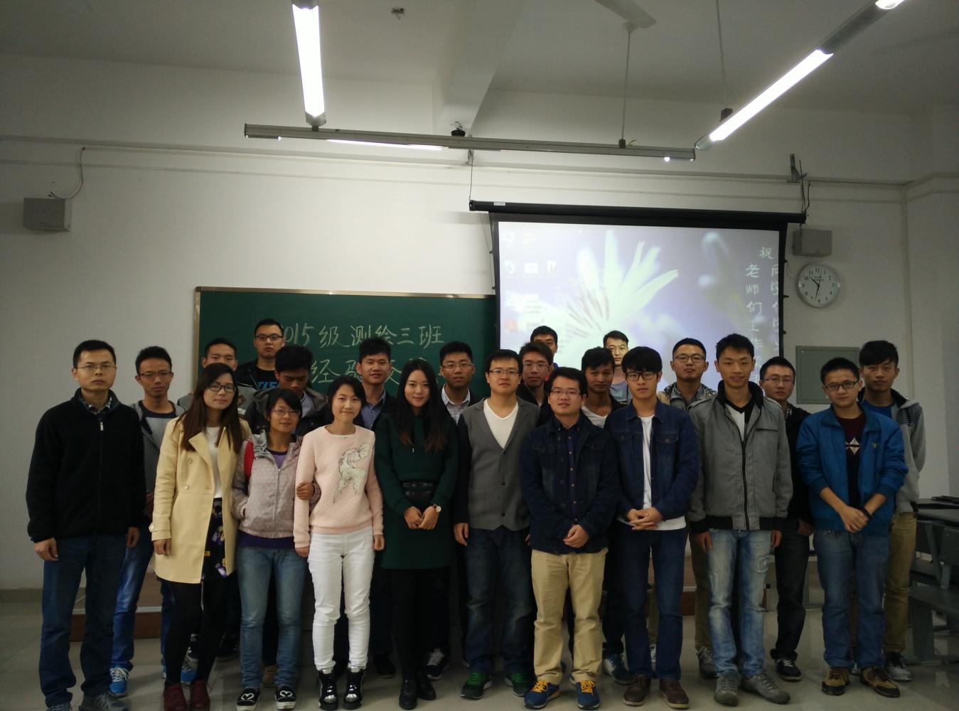 2015年10月日上午9:00——11:00,由BEATS测绘工程三班举办的以“传经授道,携手并进”的学习经验交流会顺利举行,参加人员有研一员工和四位各方面表现优异的学长给我们分享他们在对研究生学习和生活多方面建设性的建议和经验,四位学长分别是博士二年级的谭诗腾学长(导师:徐柱,是第六届博士研究生拔尖创新人才培养对象)、博士二年级的李政学长(导师:李永树,获得过国家奖学金)、研二的刘锟铭学长(导师:李永树,获得学业奖学金一等奖,研一发表了一篇中文文章)和研二的洪安东学长(导师:黄泽纯,目前担任本科生助教)。本次经验交流会主要面向研一新生,目的在于在使研一新生更快、更好的完成由本科生到研究生的角色的转变,迅速的融入到研究生队伍中。