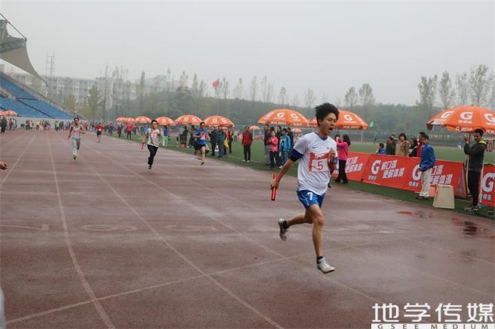 随后进行的是教职工男子4*100米,同学们看见自己的老师与辅导员上场激动异常,看台上响起阵阵掌声,呐喊声与欢呼声。听到这些,教职工们更加努力,希望能为院争光。今年地院派出了廖昕,杨都强,陈建奇,刘了四位老师出阵。发令枪响,一棒的廖老师一马当先,连续超越好几名老师后,熟练的将棒传递给了二棒的杨辅导员,杨辅导员不甘示弱,继续稳定局势,将棒交给三棒陈老师,陈老师继续拉大领先水平,最后将棒稳稳交与四棒的刘老师,刘老师奋力冲刺,使出全力,最终第一个冲过终点线,拿到了小组第一名。这一刹,观众们沸腾了,选手们也激动的击掌庆贺。“漂亮!厉害!”人们纷纷前来祝贺,脸上充满胜利的喜悦。最终的总排名里,我们地院拿到了教职工4*100的季军,这也是我们有史以来获得的最好成绩,真心为他们庆贺!