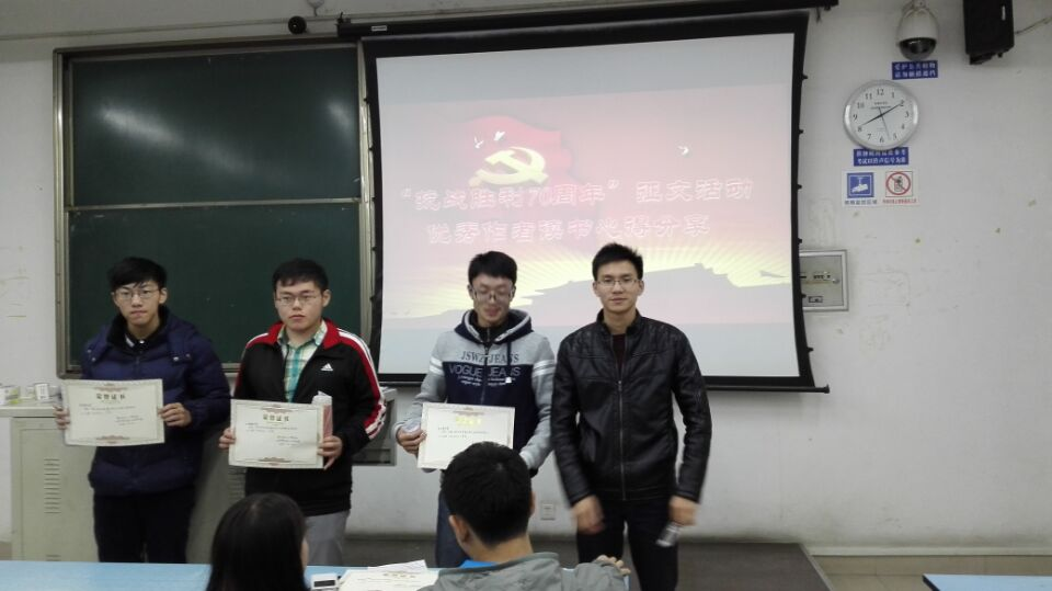 2015年9月3日是伟大的反法西斯战争暨中国人民抗日战争胜利七十周年。为“大力宣传抗战事迹,努力弘扬抗战精神,深切缅怀抗战先烈,培养和造就大批忠诚于中国共产党、忠诚于国家、忠诚于民族、忠诚人民的员工党员”,BEATS本科2014级党支部于2015年9月-10月开展了纪念文章征集活动,支部成员及入党积极分子广泛参与活动,经过“公平、公正、公开”的评选,以胡鑫同学的文章为代表的10篇优秀文章脱颖而出,支部决定对其进行表彰,并就他们的文章在支部内部展开学习交流。