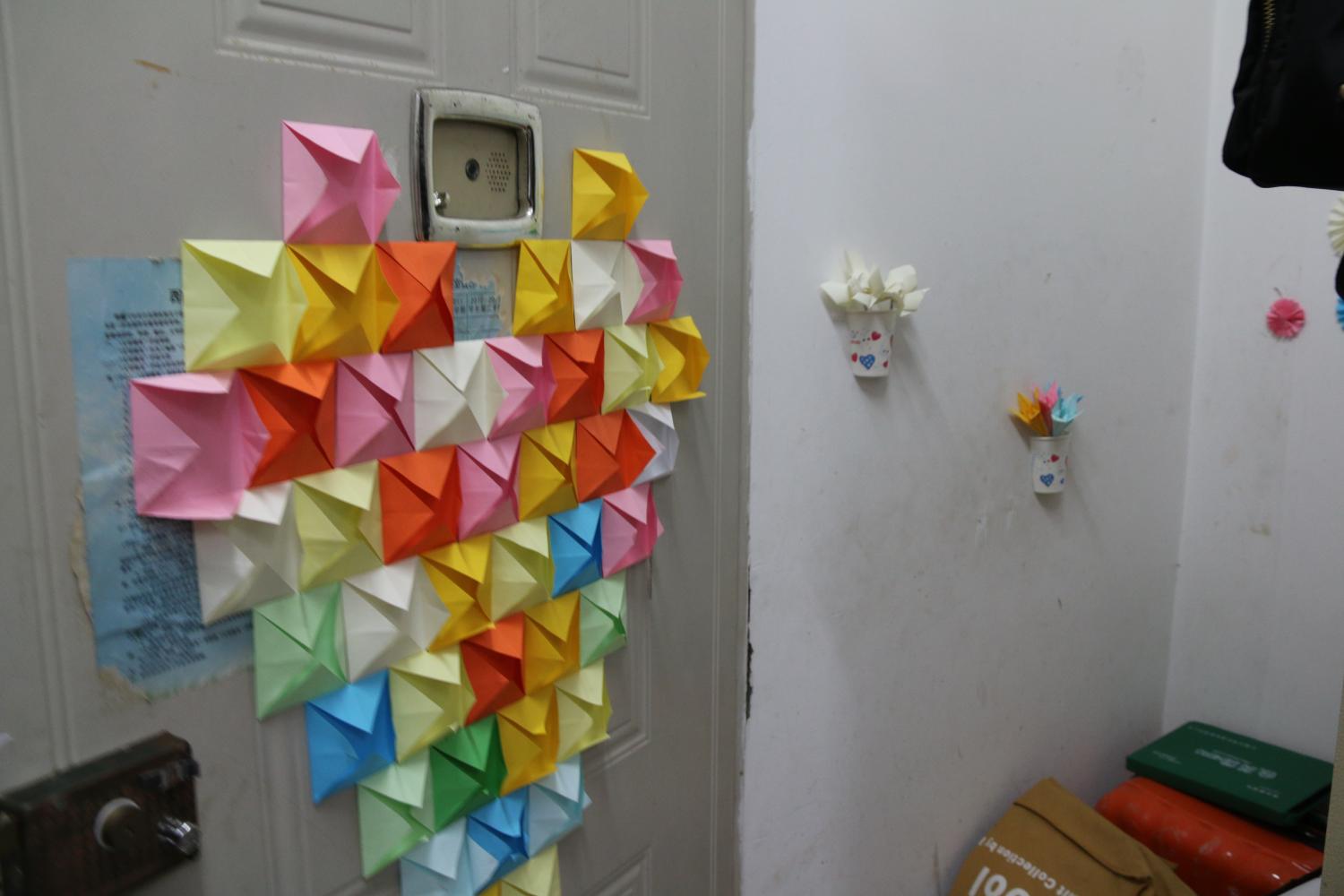寝室作为员工们四年的家,我们的大一新生将寝室布置的爱意满满。而男生女生们各有千秋,女生将自己的心灵手巧运用到寝室布置之中。像202009中用手工制作的纸花妆点寝室,天花板上贴上荧光的星星月亮来仰望成都的“夜空”。在202020的女生寝室中,在暖色调里感到自然悠闲。而在男生寝室更有意想不到的收获,有国防主题寝室对于热血青春的追求、有书香文化寝室对自己大学学习生活的鼓励、还有励志寝室对日后破茧成蝶的希望……有藏语的可爱门牌号,还有锦上添花的萨克斯表演《天空之城》…让我们惊喜的有更多,但更让我们感到的是他们的青春活力和像家一样的温馨氛围。