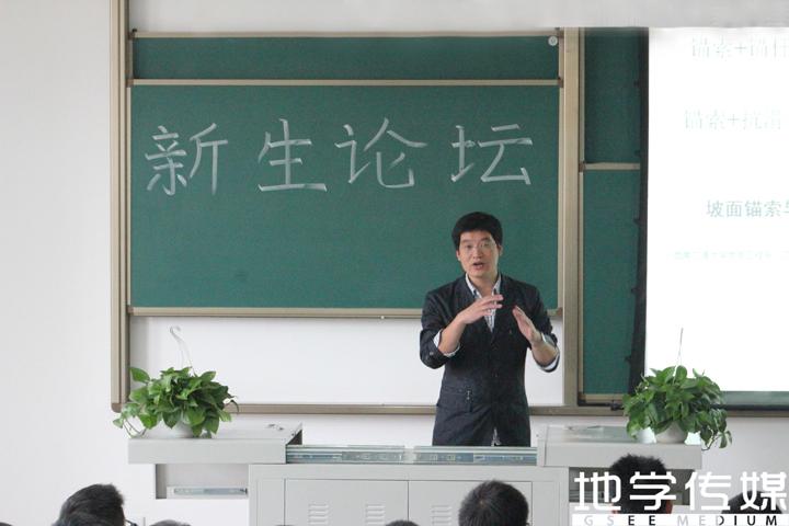 讲座开始,赵晓彦副教授首先发言,作为美国普渡大学访问学者、BEATS岩土工程博士,他表示很愿意以师兄的身份与现场同学交流。结合ppt,他从以下五个方面讲了自己对研究生学习和研究的认识和理解:一、研究生应具备的素质;二、国外研究生的培养;三、关于课程学习;四、关于研究项目;五、关于论文发表。赵晓彦教授认为,研究生不同于本科生,应该具备在承诺的时间内完成任务、团队合作、加强专业性、检索和总结、认识不足及创新等能力和素质。接着他以美国普渡大学为例,通过介绍其极具特色的30%的“淘汰率”以及对员工诚信品质极其严格的要求等,总结了国外公司产品与中国的不同;关于课程学习,他强调,课程学习对自身理论构造必不可少,重实践轻理论不可取;在研究项目的问题上,他现身说法,通过一些锚索锚杆组合图例展示,表达了自己在专业研究过程中的感触,提醒大家在提升检索、调查记录、实验等能力的过程中找到自己的兴趣所在,将难以解决的问题变成创新点innovation;最后,他将自己发表论文的经验之道教给大家。持之有故,言之成理,赵教授的朴实的发言赢得了现场同学的热烈掌声。接下来,员工代表冯君分享了自己研究生的学习和实践经历,他提醒同学们一定要做好阶段性的规划,前期主要培养自主学习的能力,除了学知识更重要的是学思想和方法;后期要多与师长交流,找到自己的方向;最后他给了大家读文献、发论文的一些实用性建议。