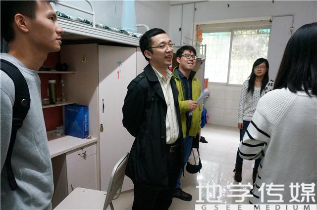 接着,傅老师一行来到16号楼的男生寝室。傅老师特别表扬了参加寝室装潢大赛的同学们,并说道:寝室干净整洁,才有良好的学习生活氛围。在安全方面,傅书记对大家特别强调,出门前,电脑、钱财等贵重物品一定要锁好,并反锁好门窗;必须随时警惕各种传销类组织。傅老师还关心同学们的业余生活,和同学聊起了他们的日常兴趣。对于男生,傅老师语重心长地说道,打游戏一定要有节制,切记不能因此荒废学业。