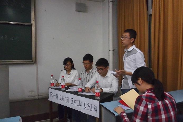 接下来在马楠同学的主持下进入了辩论环节,艺传公司代表队担任正方,BEATS代表队担任反方,继两方慷慨激昂及充满理性色彩的自我介绍后,比赛开始,双方就辩题“一个好辩手到底是不是好恋人?”进行了一番“唇枪舌战”。首先由各方称述自己方的观点,用时3分钟,接下来由正反方提问,并且回答。首先双方一辩用具有高度概括性的陈述为本场辩论开篇立论。然后双方二辩彼此反驳。双方二辩灵活的思维和缜密的逻辑推理,不时的赢得场下阵阵掌声。而到了比赛的第三环节自由辩论阶段,可以说是本场辩论的高潮。面对艺传公司的引经据点,旁征博引,BEATS的辩手们则巧用四两拨千斤的方法,一次一次化险为夷,击破对手的观点。更是赢得在场同学的阵阵掌声。在经过激烈的言辞对抗之后,由各方派出代表来总结各自代表队的最后陈词。正反两方的台风都吸引了在场同学的眼球。同时,双队辩手表现出色,在每个环节都能用自身出色的口才为各自的论点润色并细心地找出对方的漏洞,紧扣漏洞来做出反应。尤其是在“攻辩阶段”和“自由辩论”环节双方的精彩辩论赢得了全场的连声叫好与热烈掌声。这场精彩的辩论赛最终完美落幕。